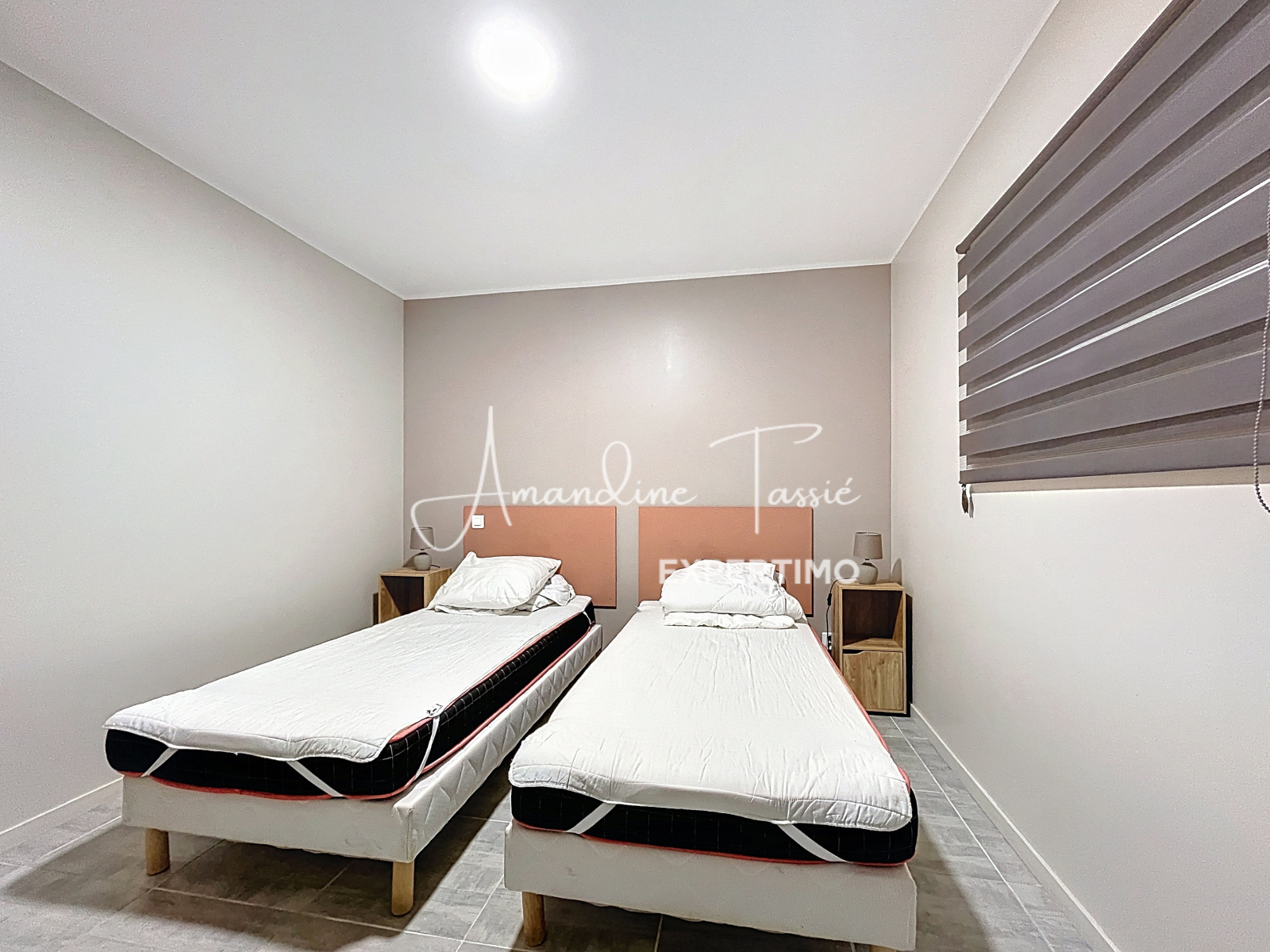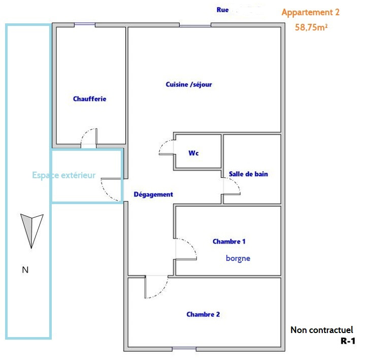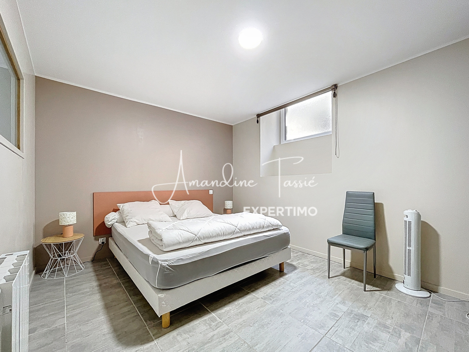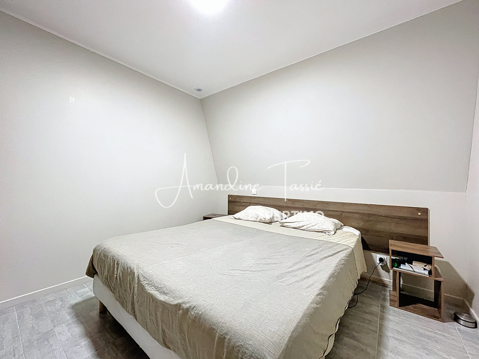 58,75 m² sous la maison, avec deux chambres dont une borgne. Avec un petit coin extérieur à l'abris des regards,