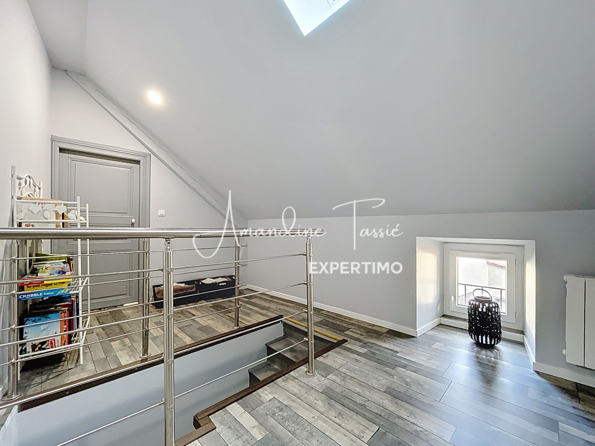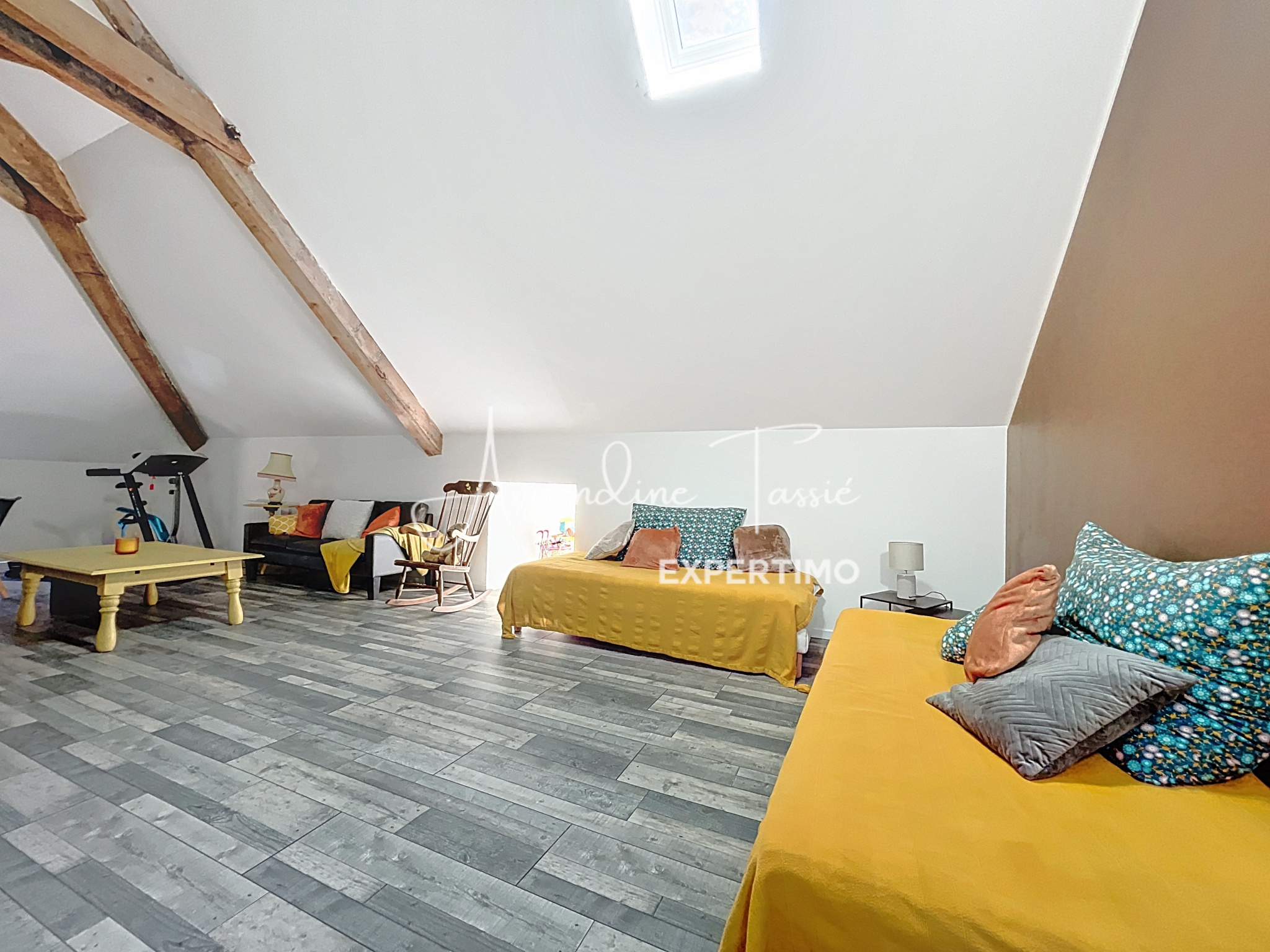 À l’étage, deux grandes chambres mansardées, une salle de bain avec toilettes et une pièce d'environ 33 m² pouvant servir de salle de jeux, salon TV ou espace détente pour de l'accueil.