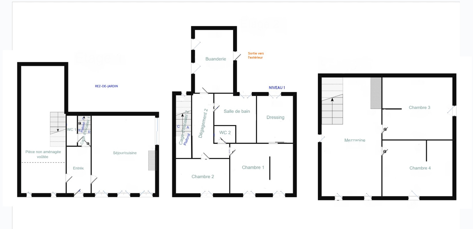 Le rez-de-chaussée s’ouvre sur un séjour cuisine lumineux de 42 m² avec accès direct à la terrasse, idéal pour profiter des extérieurs. On y trouve également un toilette et une impressionnante pièce voûtée, ancienne fromagerie, d'environ 88 m², parfaite pour stockage, atelier ou projet complémentaire.