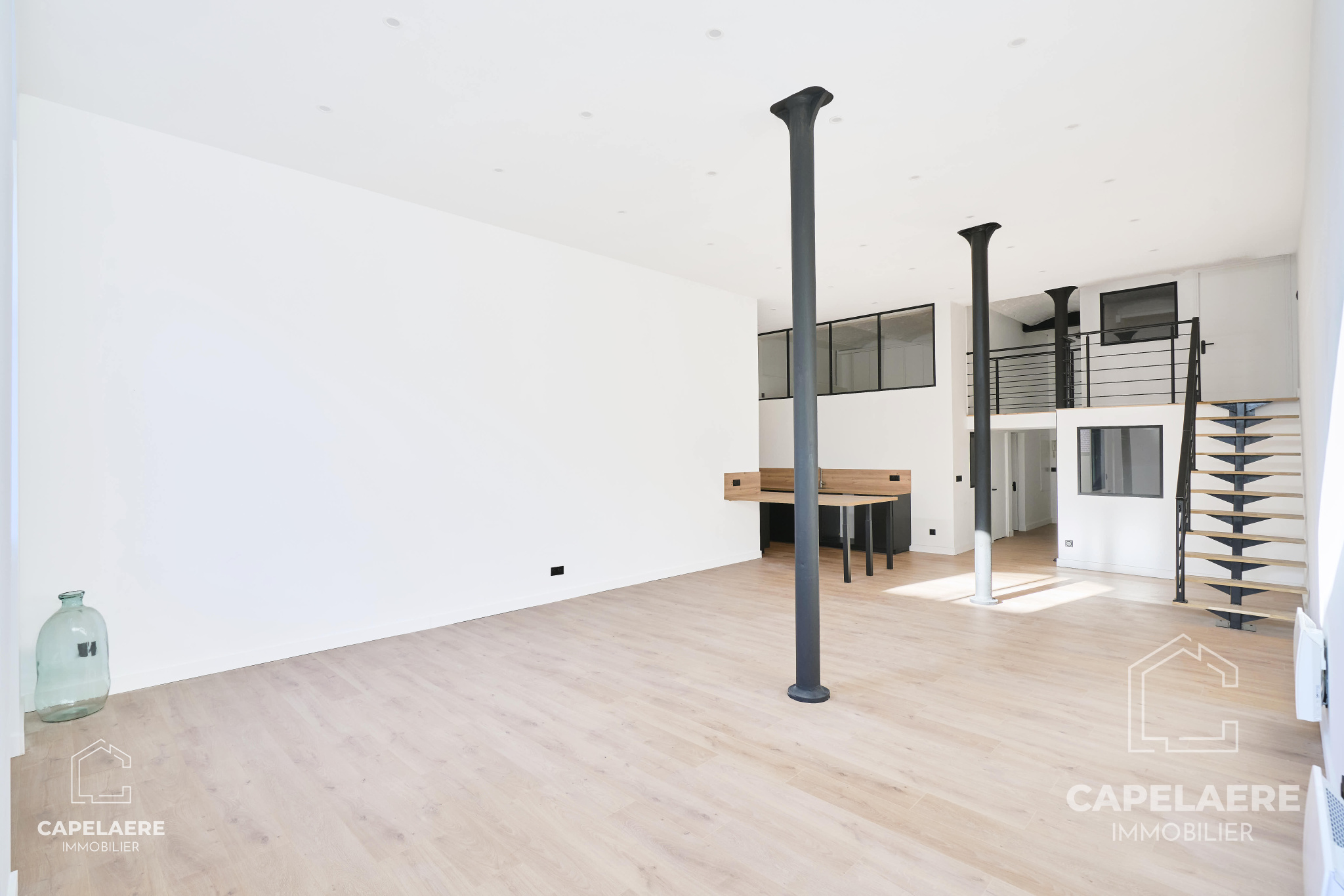 Ce loft se distingue par sa pièce à vivre de plus de 55 m² avec cuisine équipée ouverte, créant un espace convivial et moderne, parfait pour recevoir.