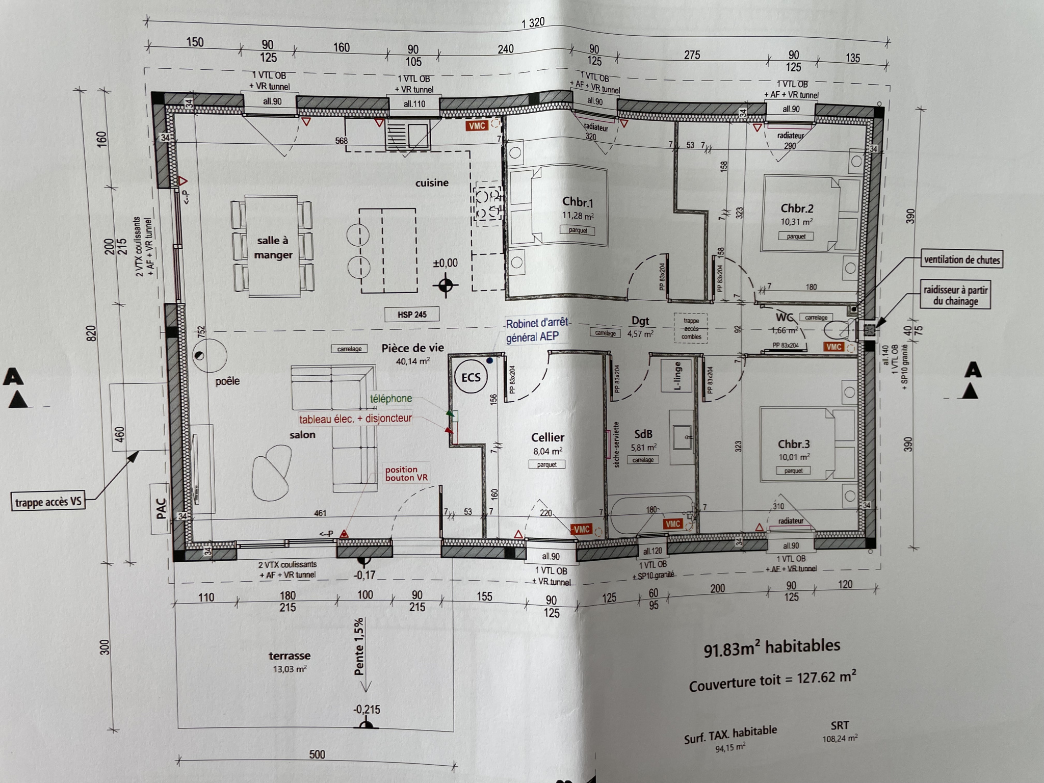 Vous serez immédiatement séduits par sa pièce de vie lumineuse de 40 m², son cellier pratique, ses trois chambres, et sa terrasse avec vue sur votre terrain… un vrai havre de paix.