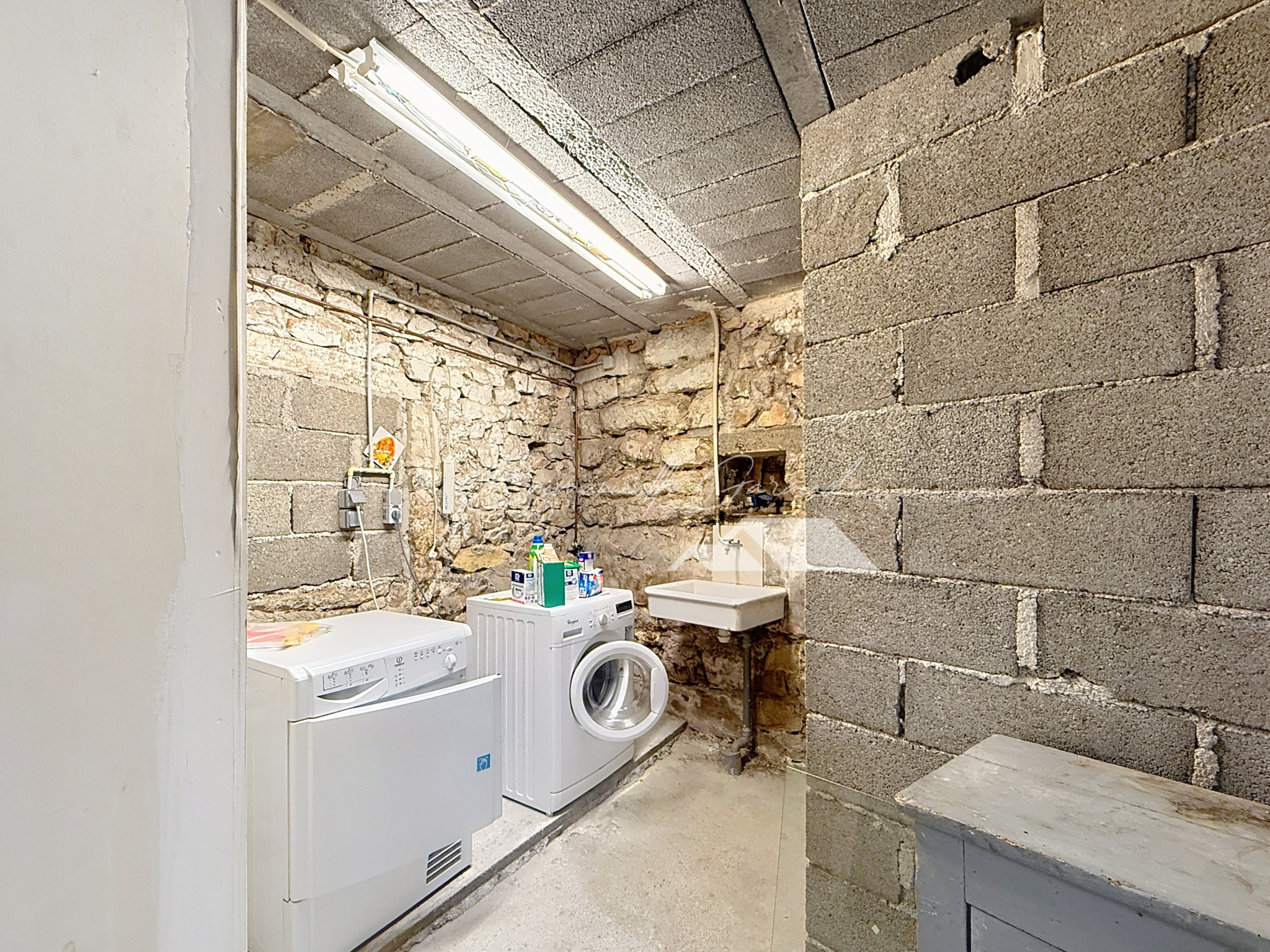 En rez-de-jardin : un grand garage de 34 m², un espace atelier / buanderie et des toilettes complètent ce bien.