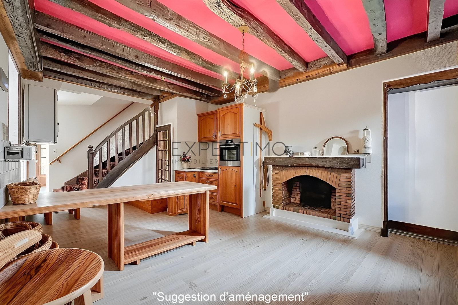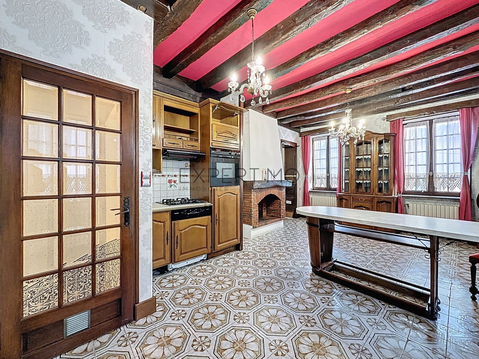 Visiophone, cuisine équipée, cheminée ouverte non tubée 3 Fenêtres en double vitrage 20000, chassies bois Escalier bois accès étage supérieur aux chambres et salle de bains