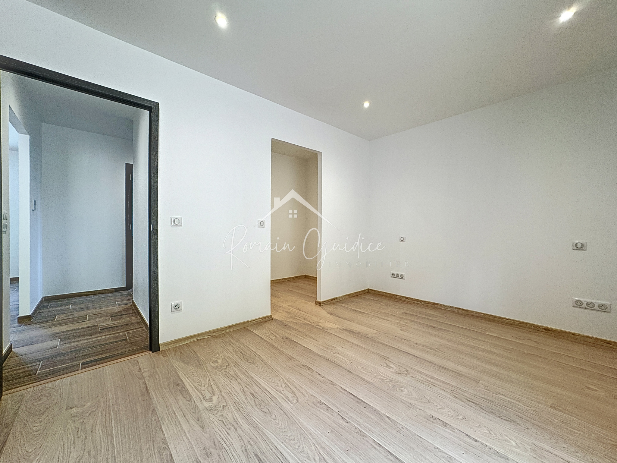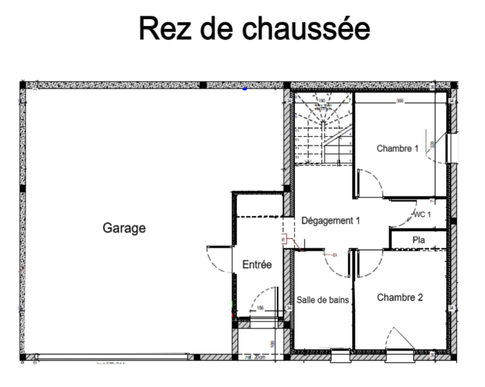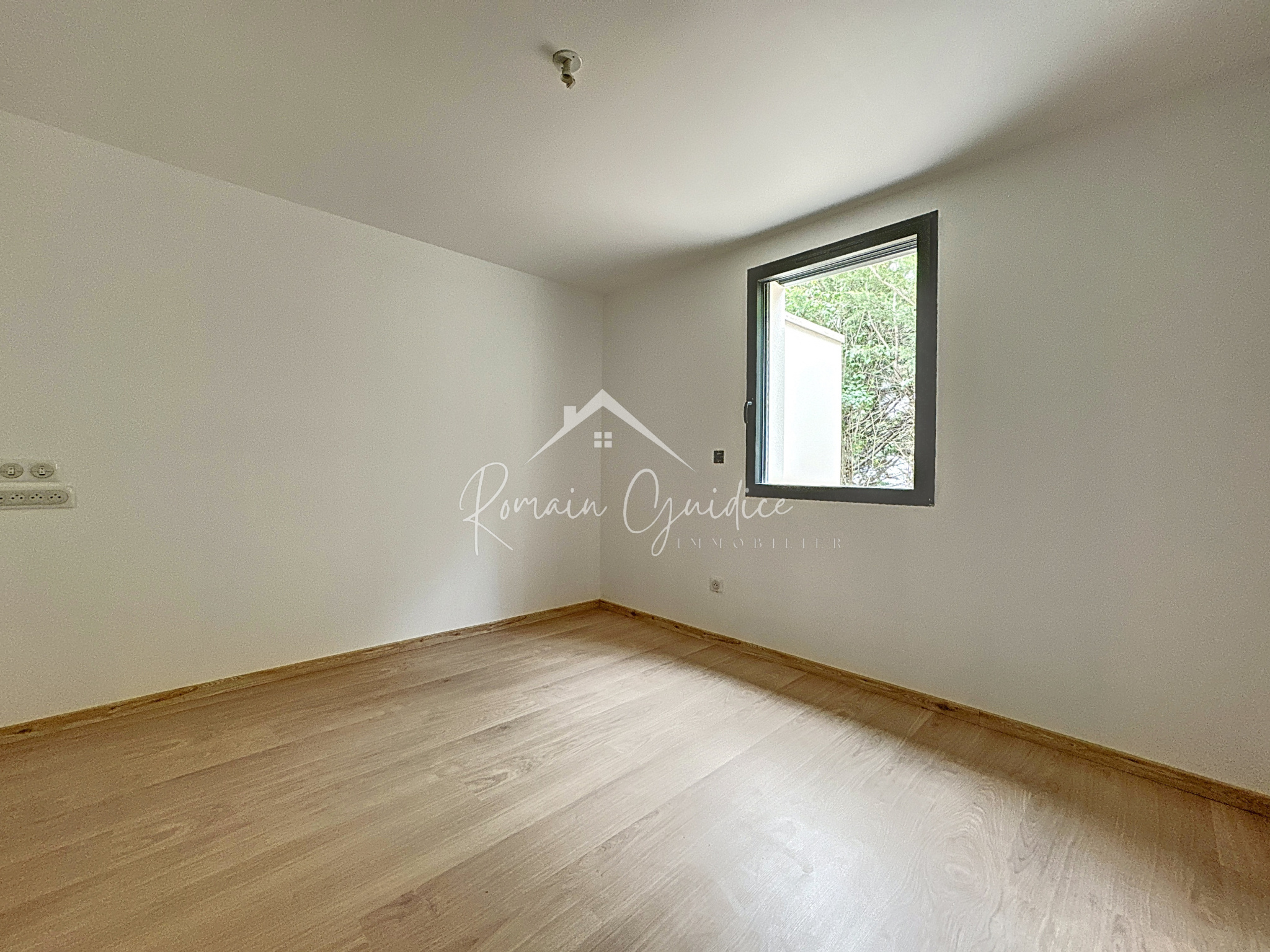 En rez-de-chaussée, la maison est composée d'une entrée desservant une salle de bain de 5,81 m2 et deux chambres de 9,60 m2 et 10,26 m2.