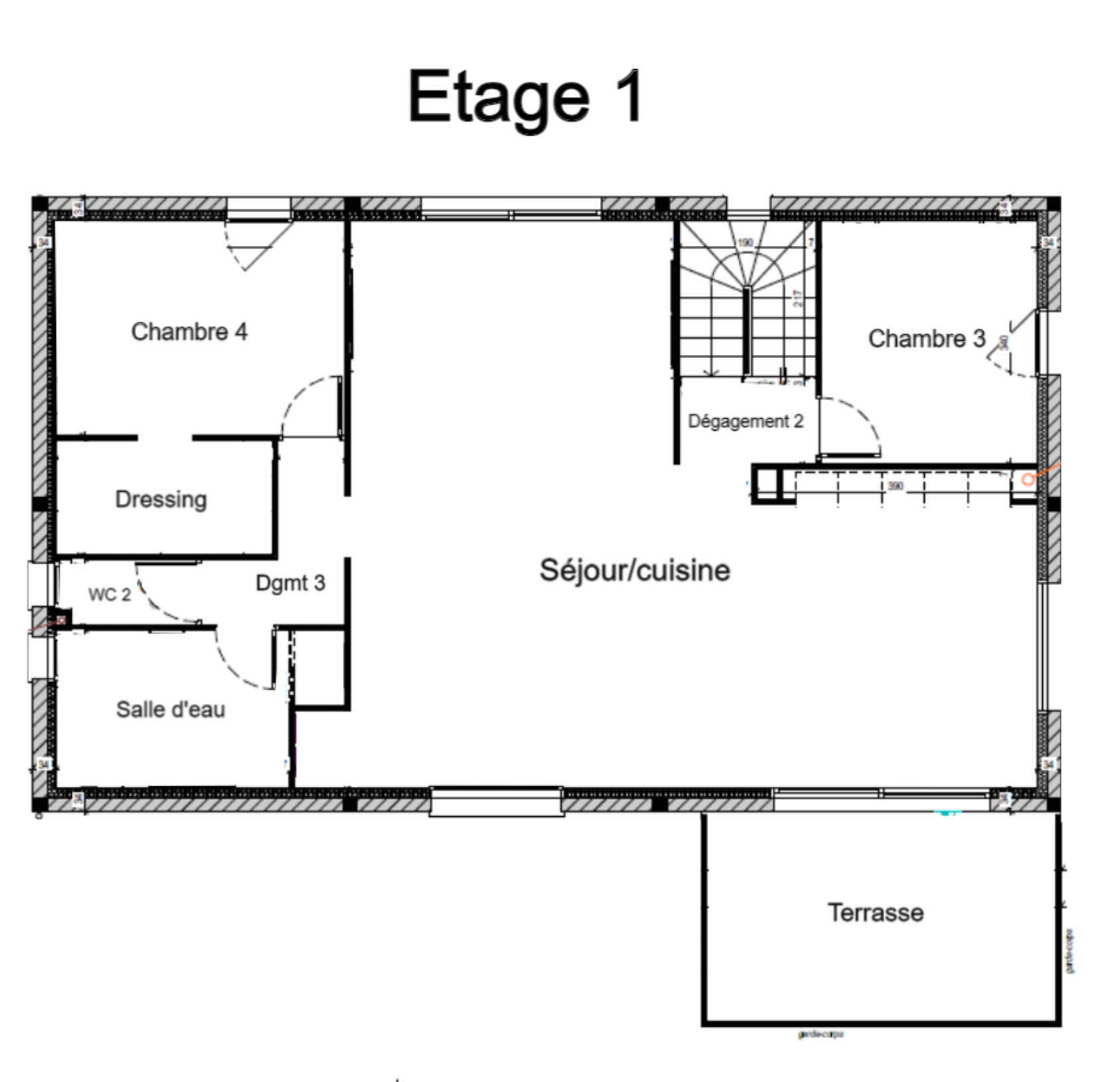 Une chambre de 10,20 m2 et la superbe chambre parentale (avec porte et cloison de séparation par rapport au séjour isolés phoniquement) de 16,77 m2 avec son dressing, son WC séparé et sa salle d'eau de 7,93 m2 complètent ce niveau.