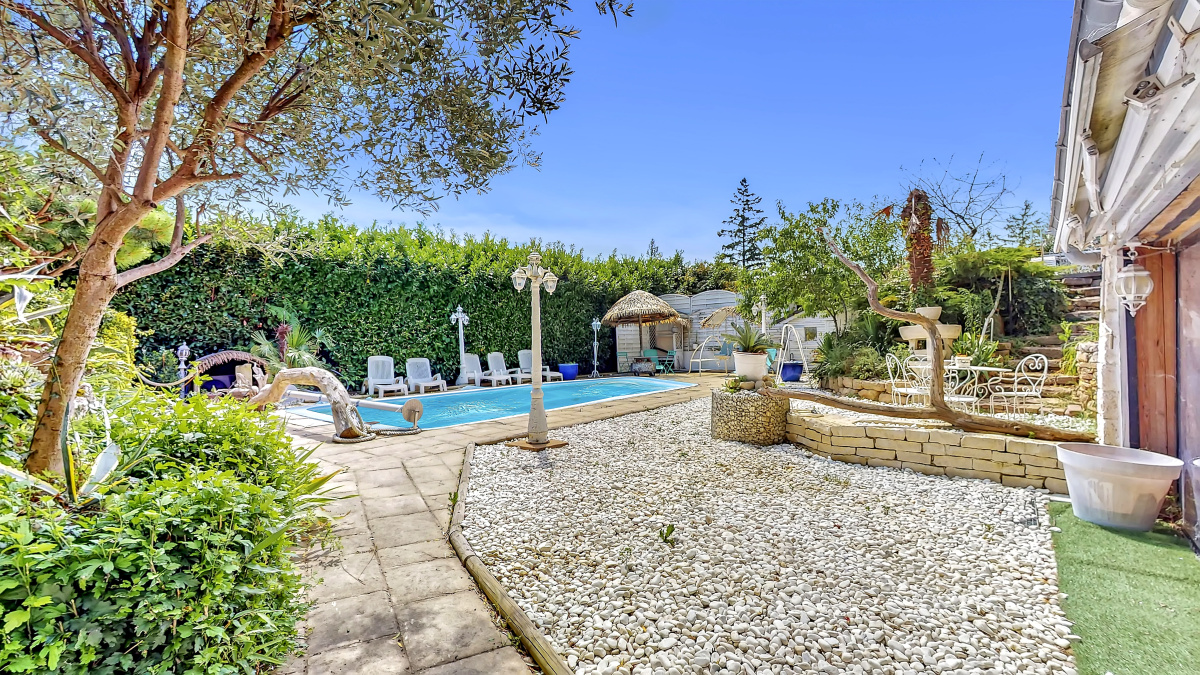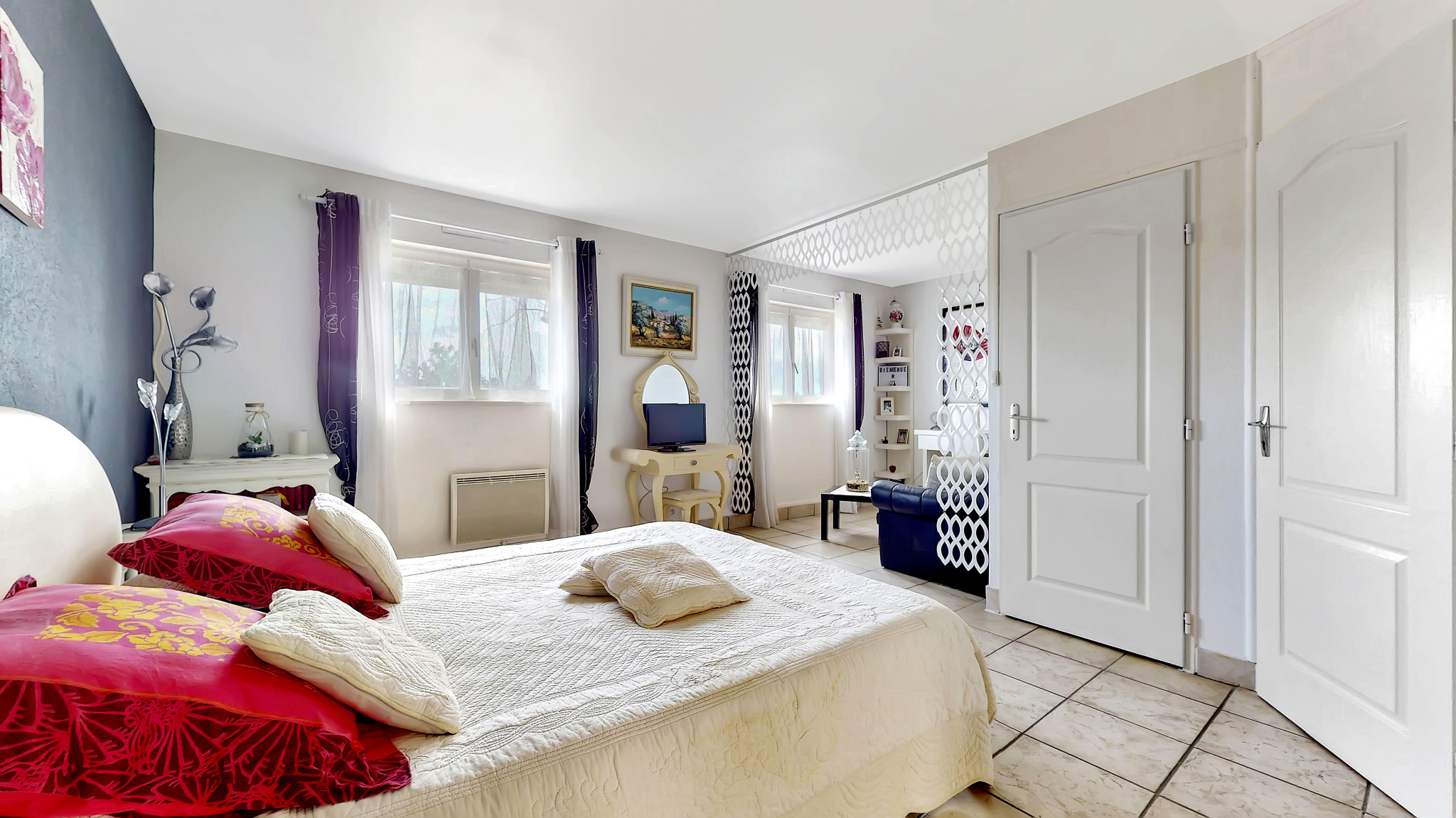 La véranda ouverte sur la terrasse et la piscine, la cuisine d’été et la salle de jeux, véritables lieux de convivialité et aménagées pour recevoir famille et amis dès les premiers beaux jours, complètent harmonieusement la maison.