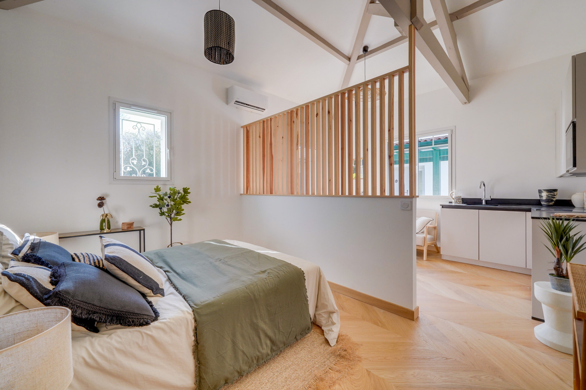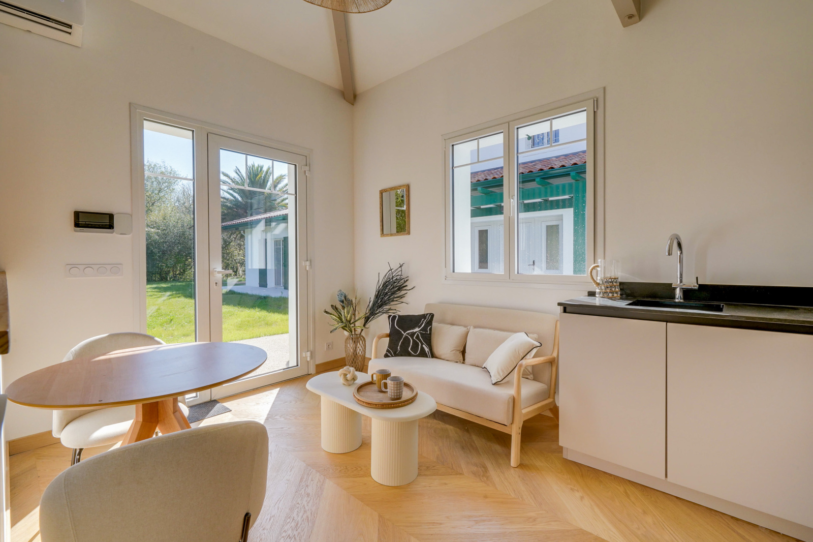 Une seconde maison entièrement indépendante, composée d’un séjour avec cuisine et d’une chambre, permet d’accueillir famille, amis ou personnel.