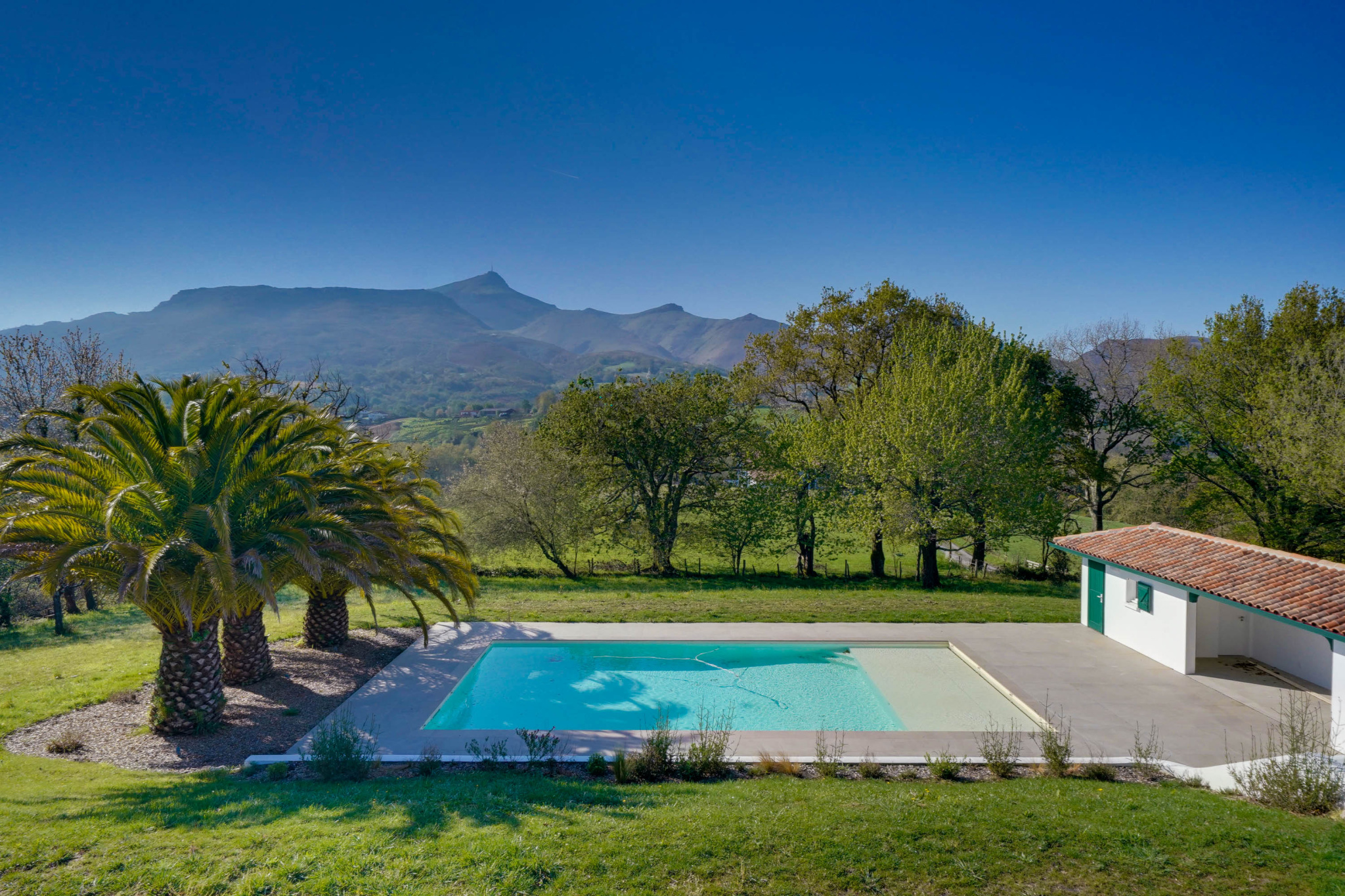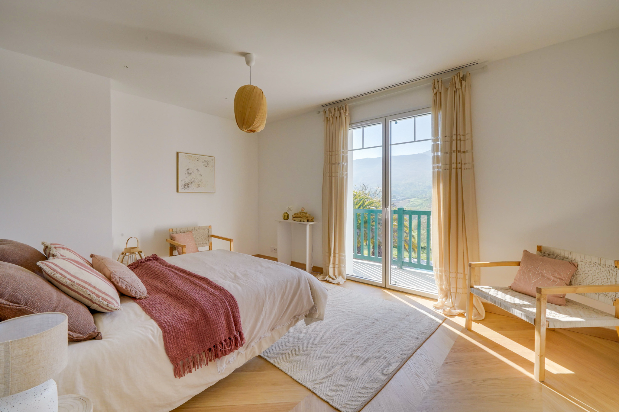 Une grande terrasse orientée plein sud face à La Rhune permet de profiter pleinement du calme et de la vue sur les montagnes.