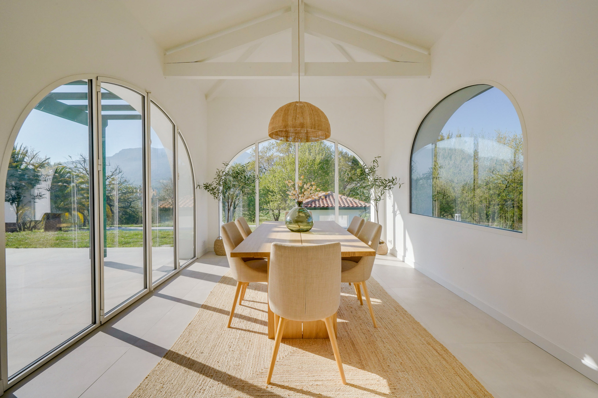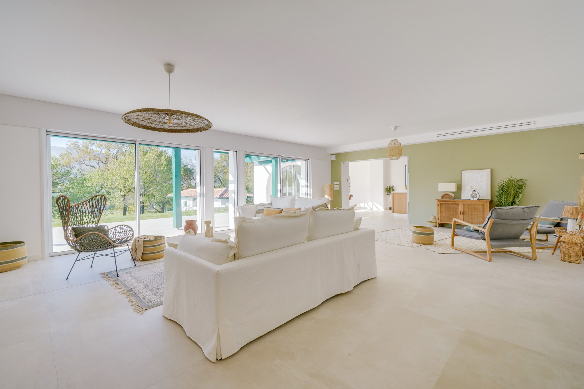 Entièrement rénovée avec des matériaux de très grande qualité, cette maison d’environ 330 m² s’inspire de l’architecture basque traditionnelle, tout en intégrant des prestations contemporaines, dans une atmosphère à la fois élégante et chaleureuse.