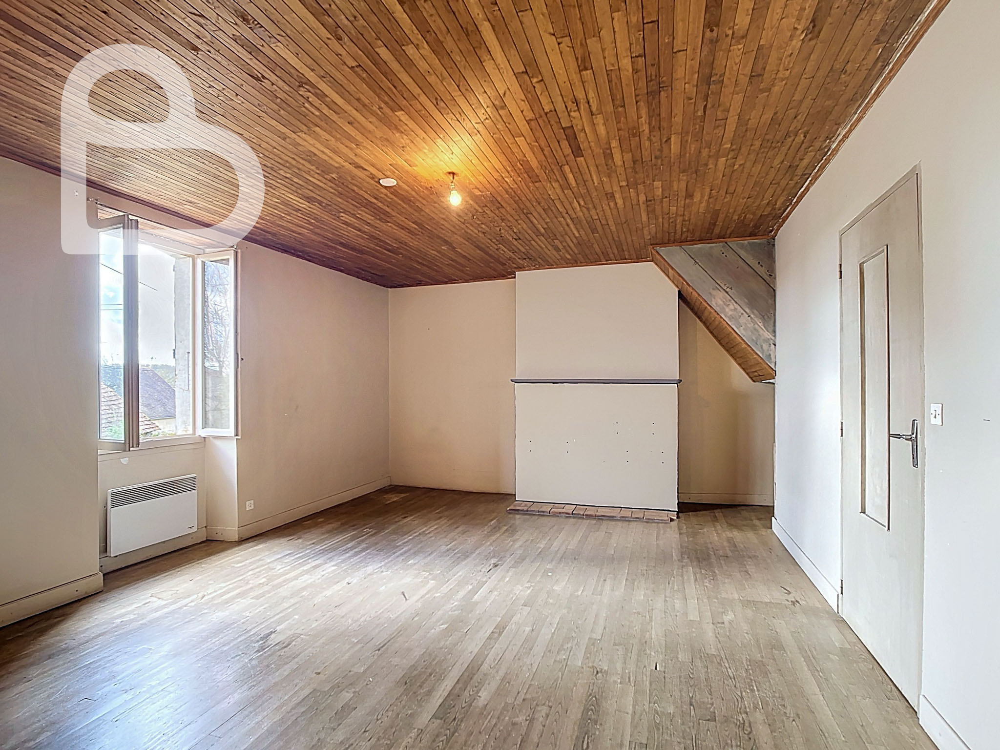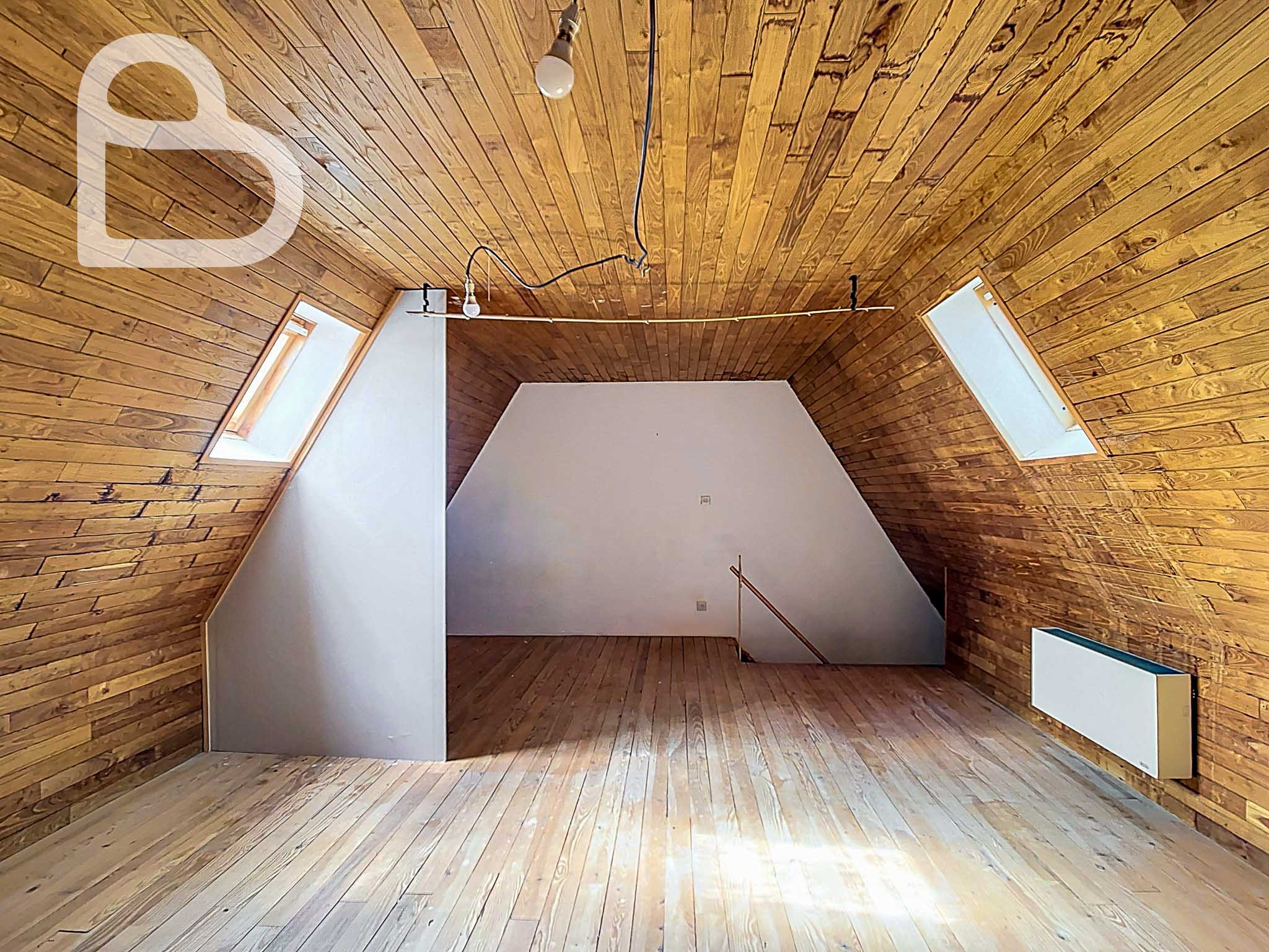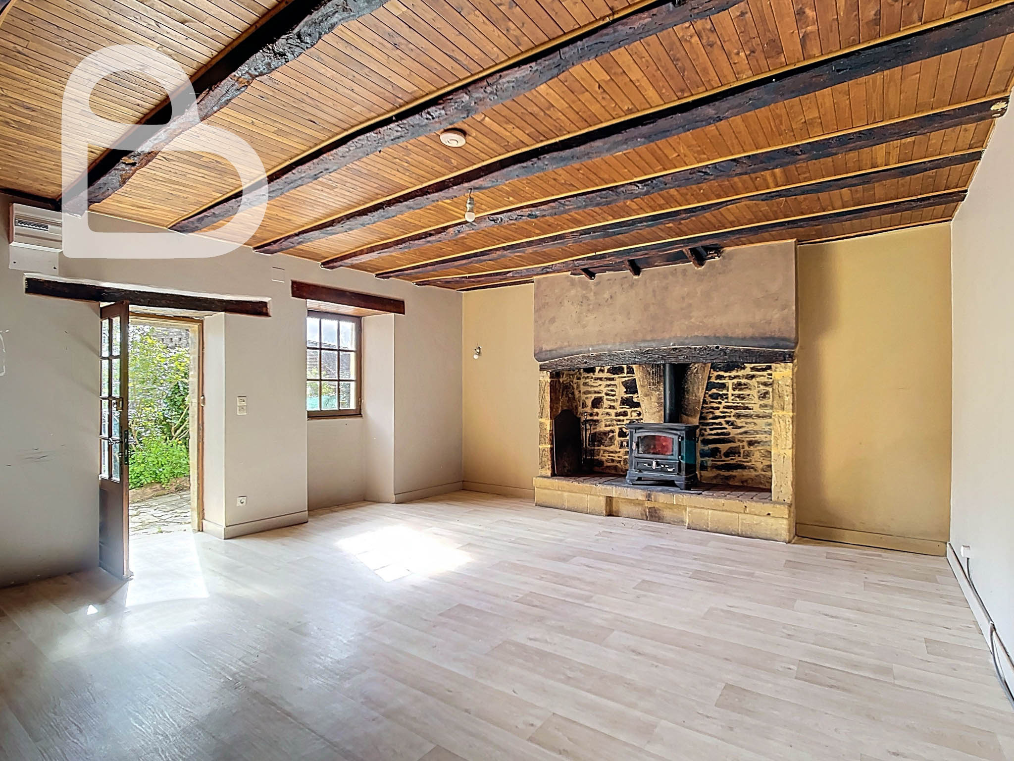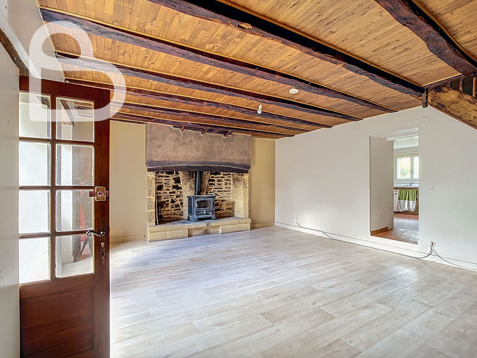 Au rez-de-chaussée, côté façade, se trouve un séjour avec un poêle à bois et un joli plafond à poutres apparentes qui créent une atmosphère chaleureuse et accueillante. Une seconde pièce, également équipée d'un poêle à bois, peut être aménagée en salon ou en chambre supplémentaire.