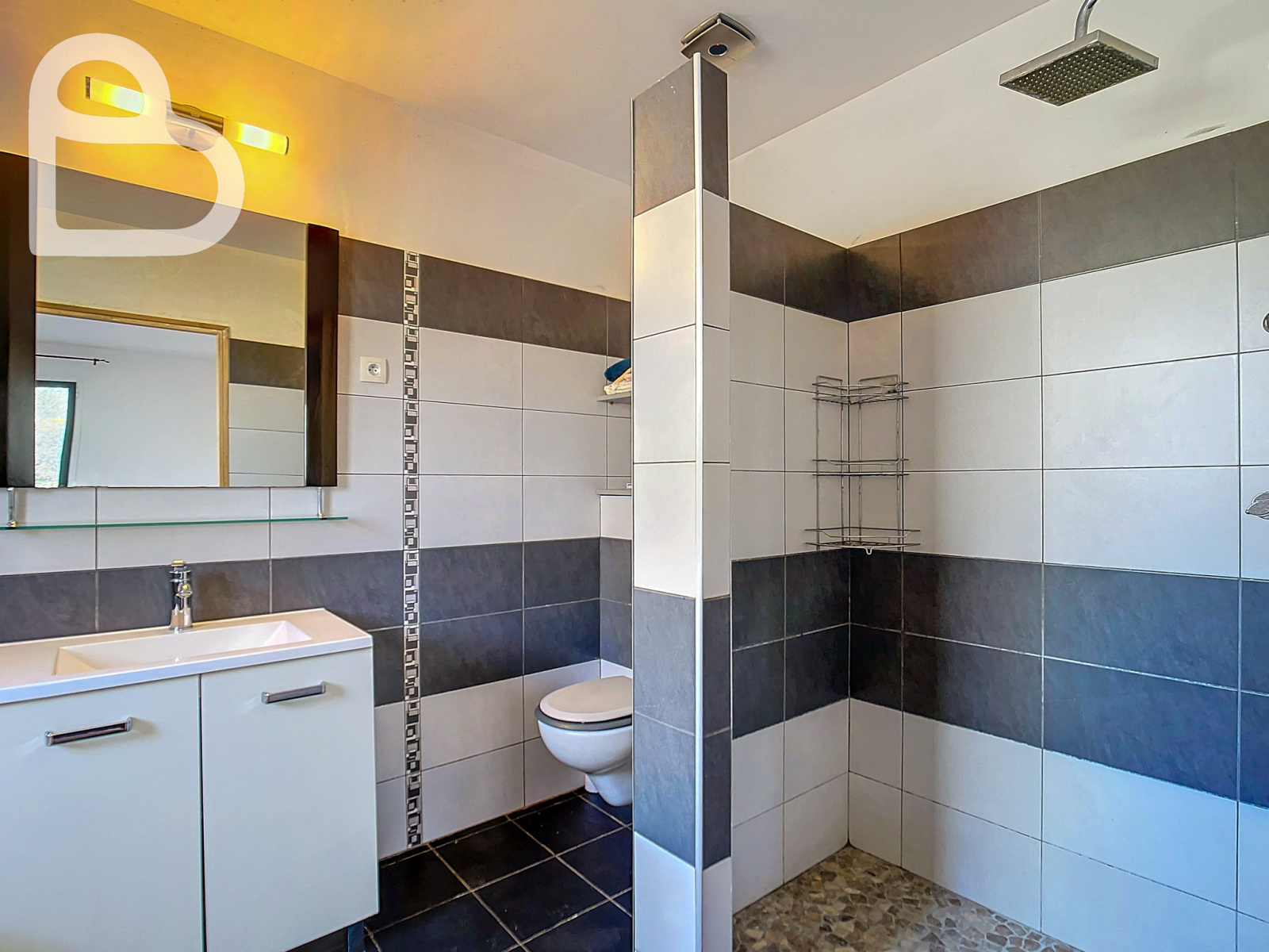 La maison dispose actuellement de deux chambres à coucher (23,50m2 et 13,20m2), toutes deux avec une salle d’eau (Douche/lavabo/WC) attenante. De plus, il y a un cellier et des toilettes séparées.