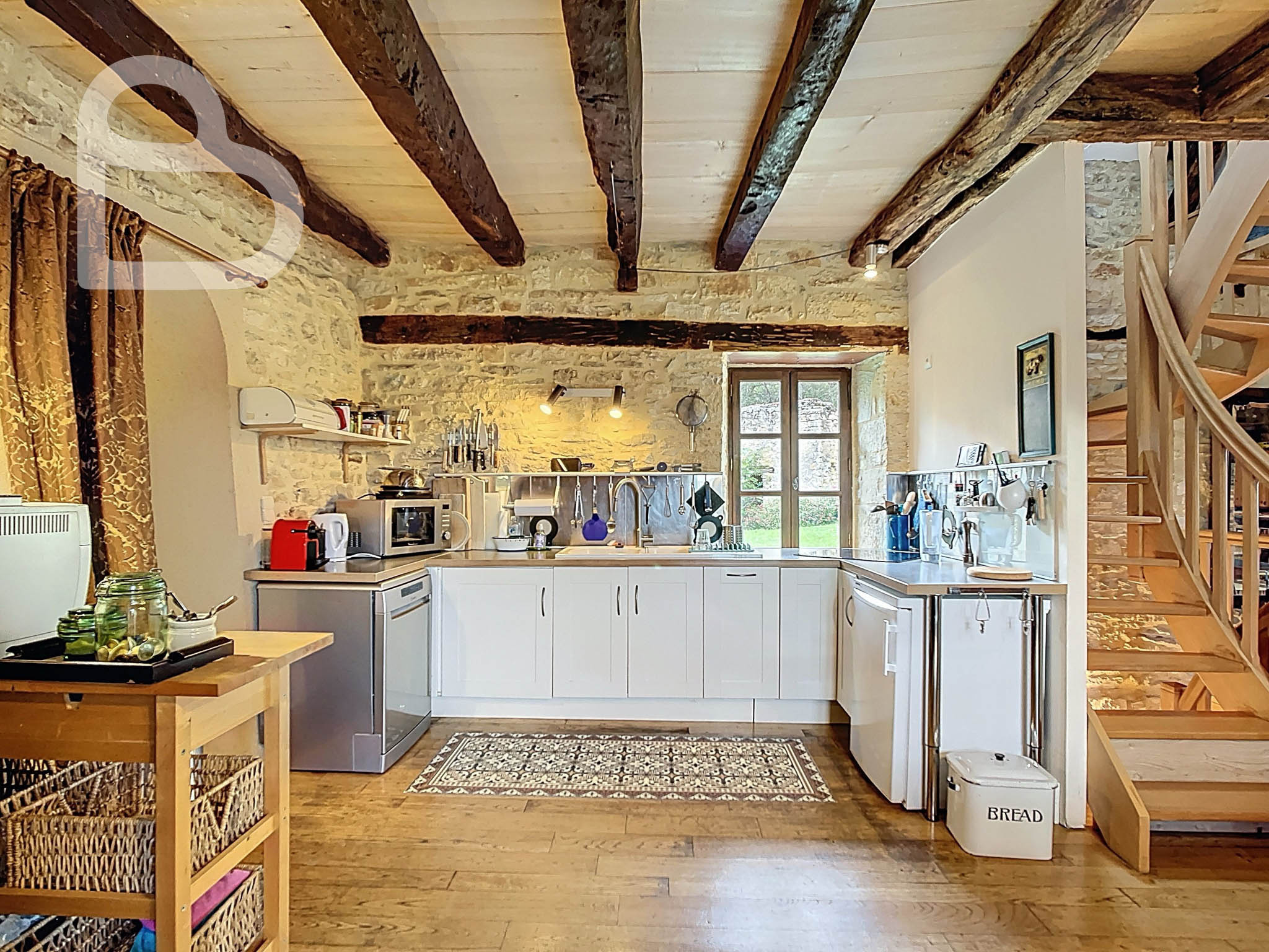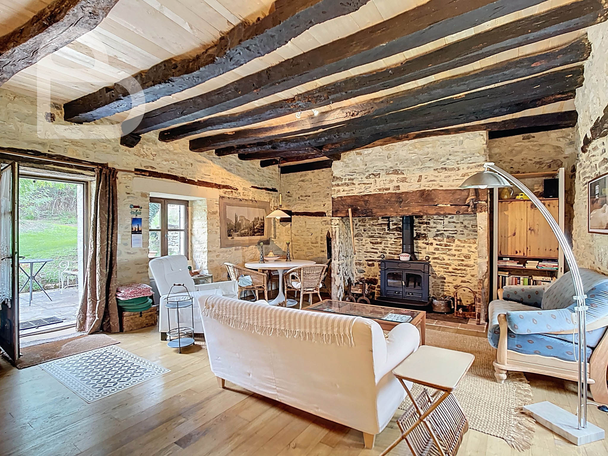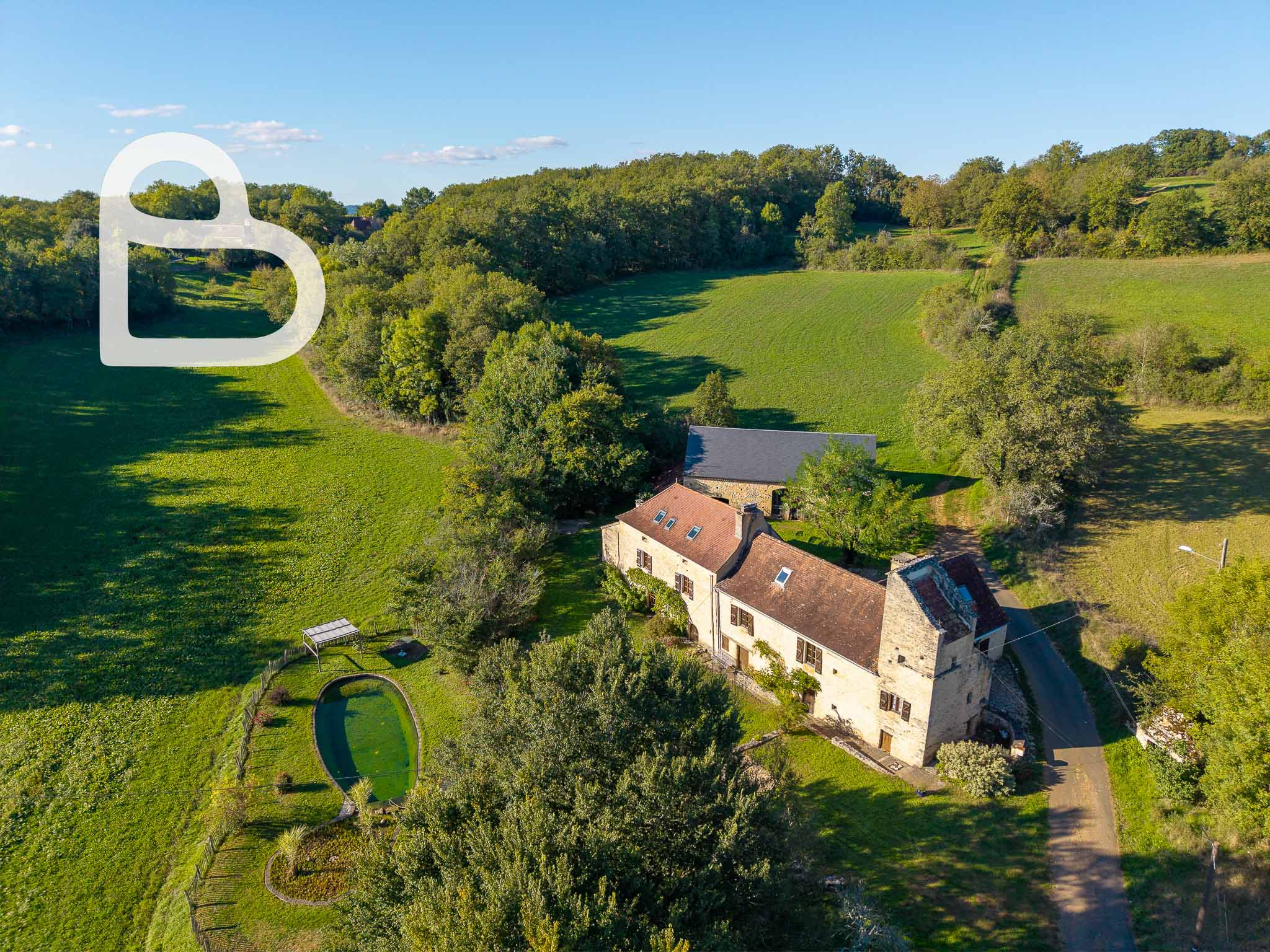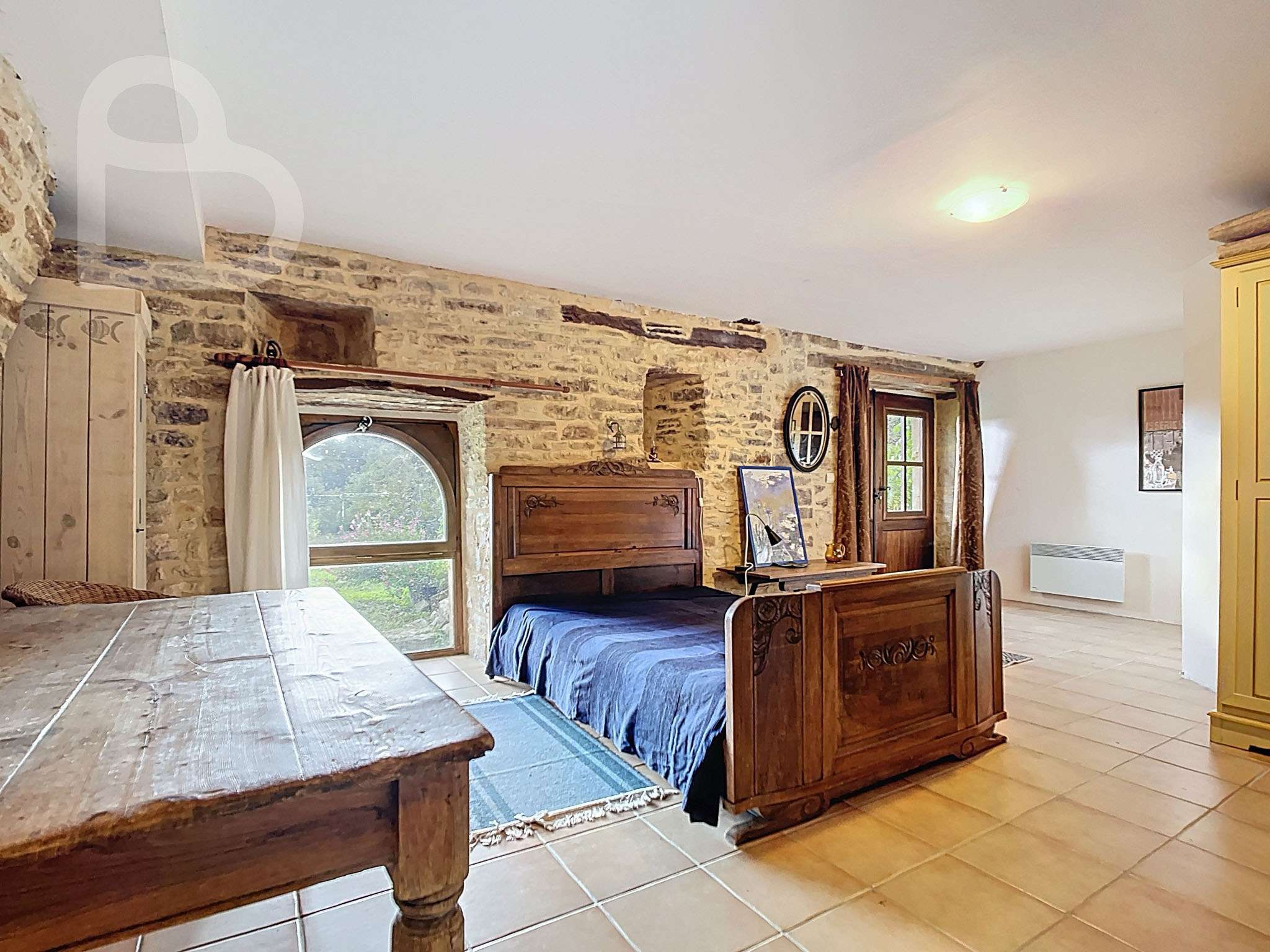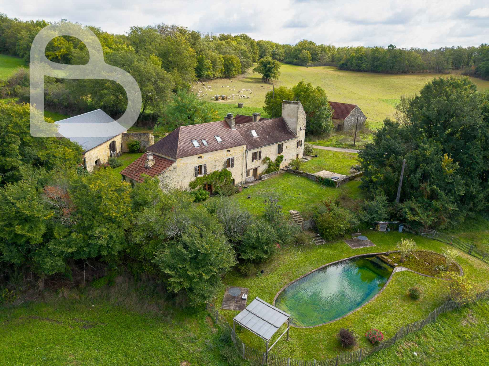 Au bout d’un chemin paisible, cet authentique domaine en pierre comprend deux maisons mitoyennes, une grande grange (env. 98 m², toiture neuve) et une superbe piscine naturelle.