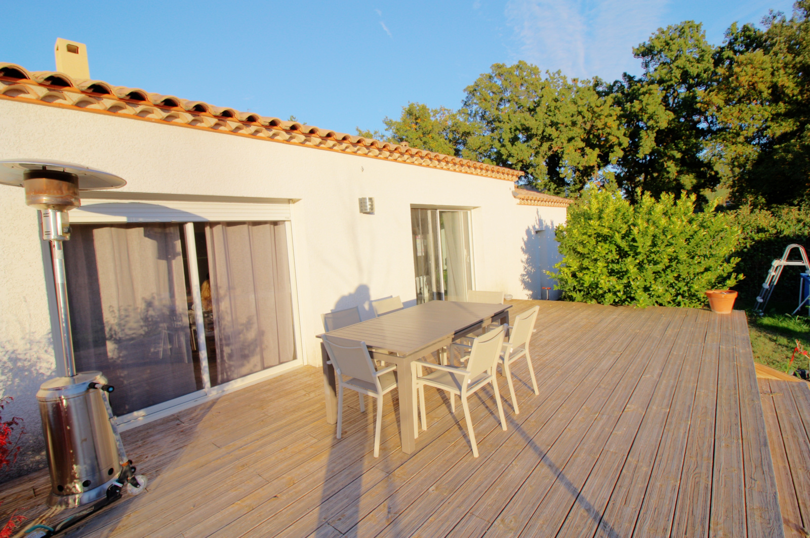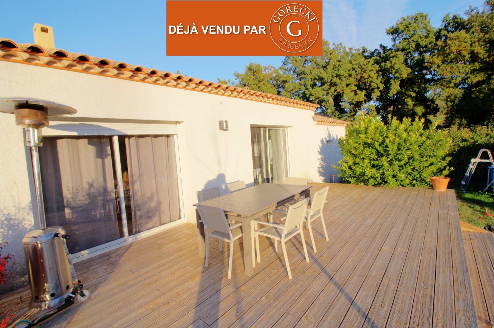 Sur parcelle de terrain de 827 m2 piscinable avec large terrasse en bois de 35 m2 et jardin.