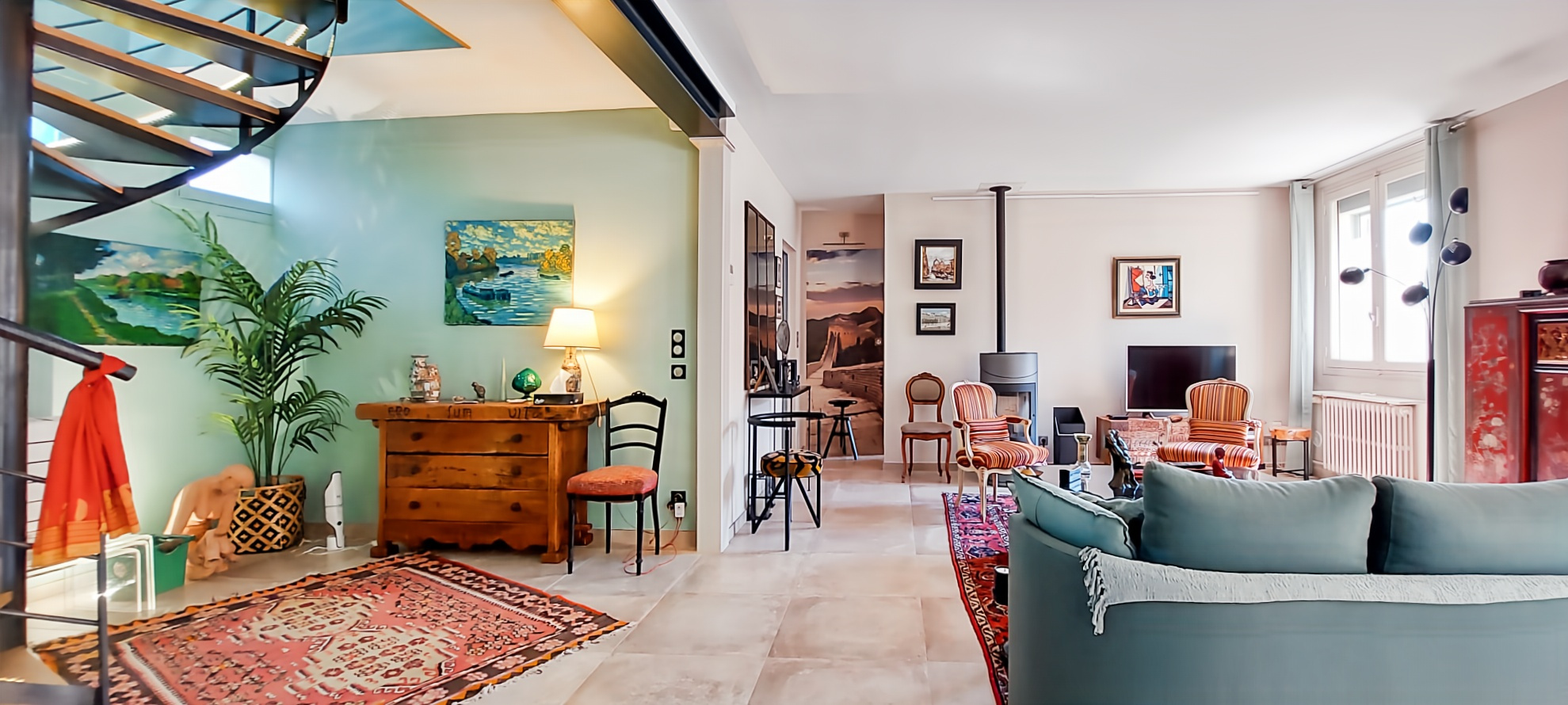 Plein sud, au calme et sans vis à vis. elle se compose de la manière suivante : superbe séjour d'environ 65 m2 avec cuisine ouverte équipée Schmit, 3 chambres dont 2 en rdc avec salle d'eau-wc ainsi qu'une salle de bains, à l'étage vous découvrirez la 3ième chambre avec sa salle de douche et wc attenant, atelier, cave, vide sanitaire.