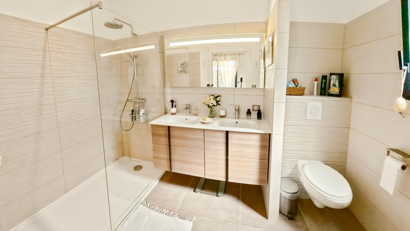 La maison offre de très belles prestations : isolation renforcée, climatisation réversible gainable, volets roulants centralisés, belle hauteur sous-plafond, menuiseries aluminium, portail motorisé, chauffe-eau thermodynamique.