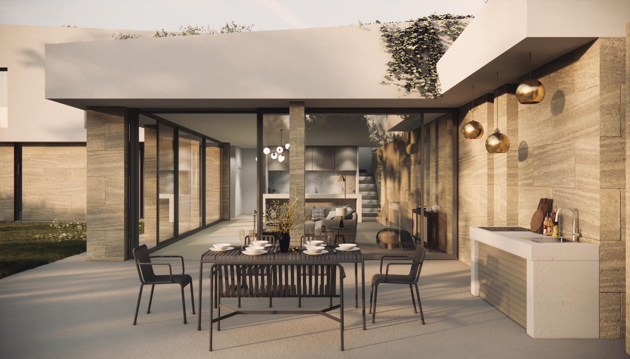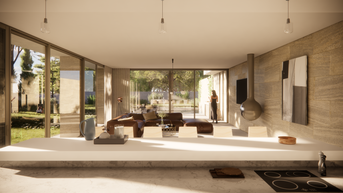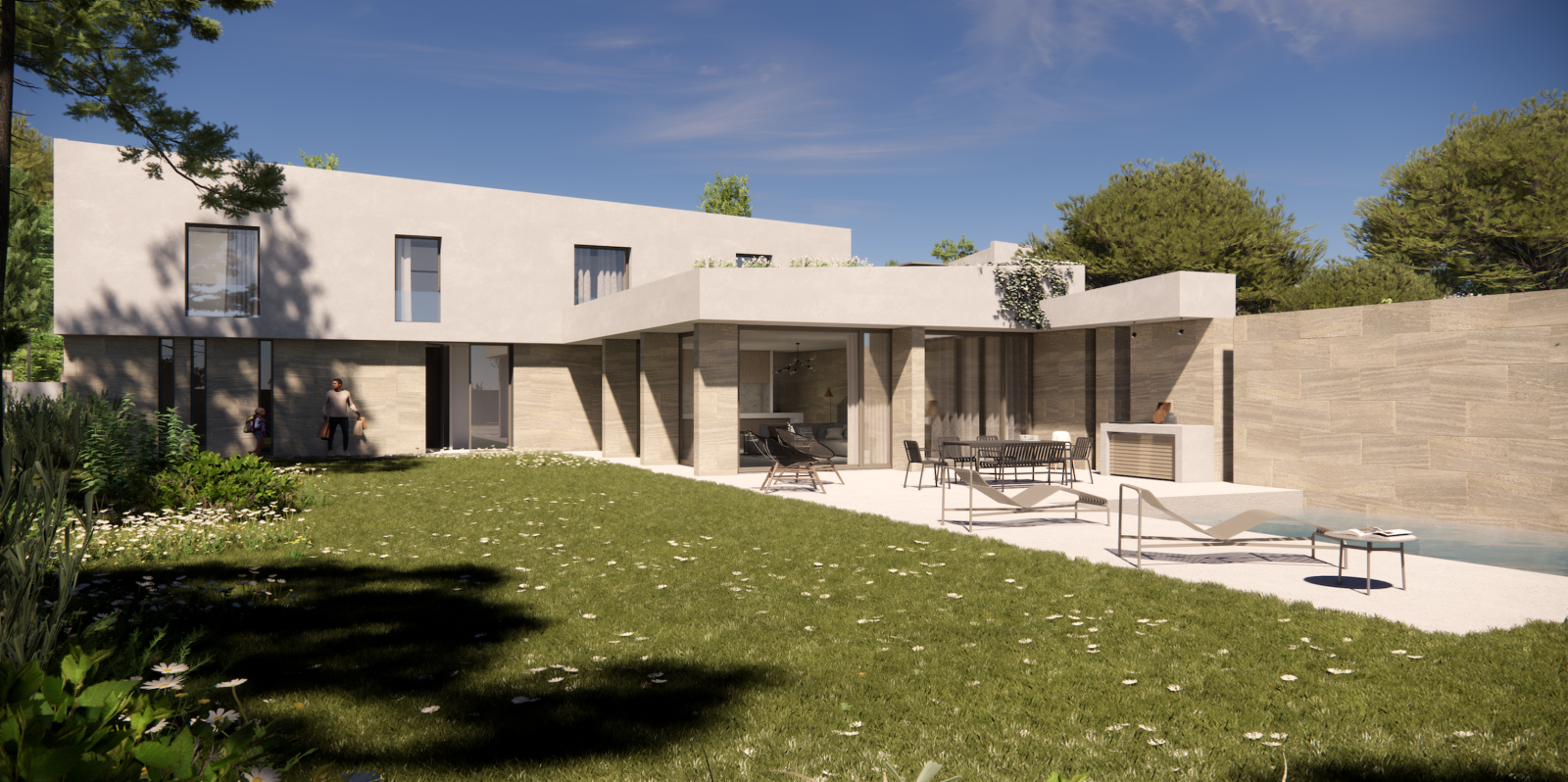 Côté prestations, larges baies vitrées, parquet et menuiseries à galandage pour les chambres, soubassements en Pierre de Vers, carrelages grands formats, faïences toute hauteur dans les salles de bains, climatisation et chauffage gainable en airzone. Personnalisation possible et choix de prestations chez Porcelanosa.