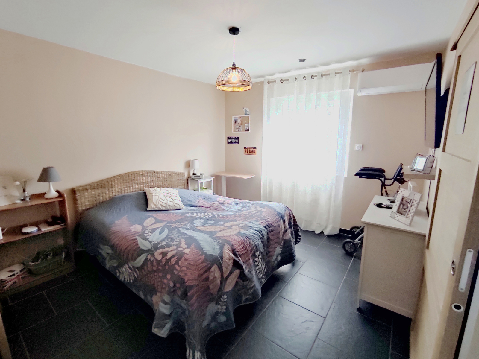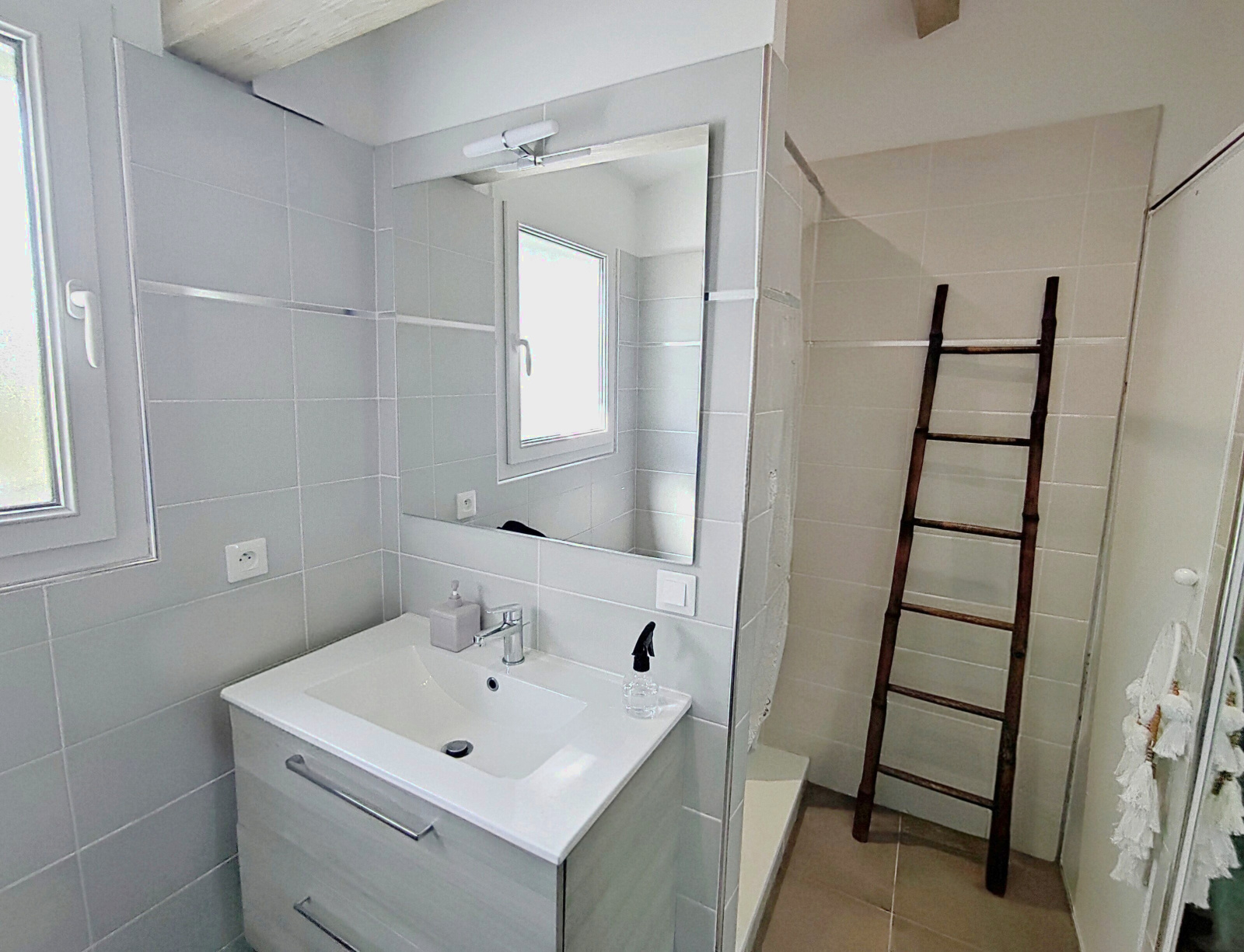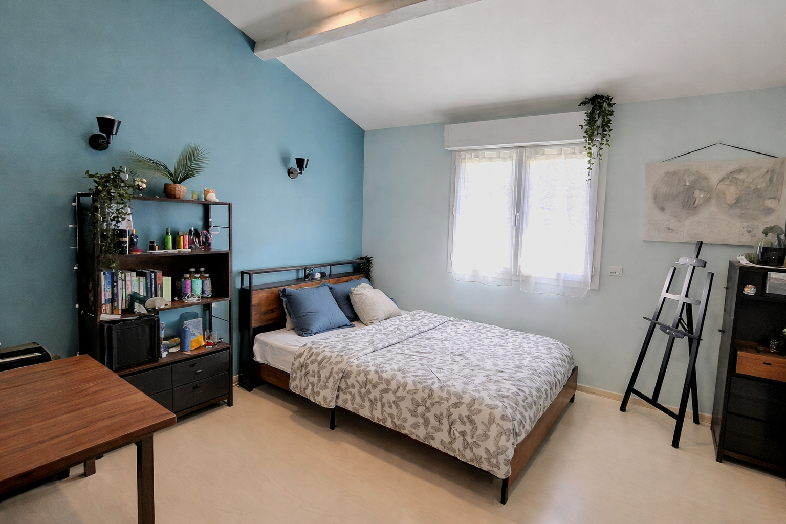 Le rez-de-chaussée permet une vie de plain-pied avec une grande chambre et une salle d’eau accessible PMR.