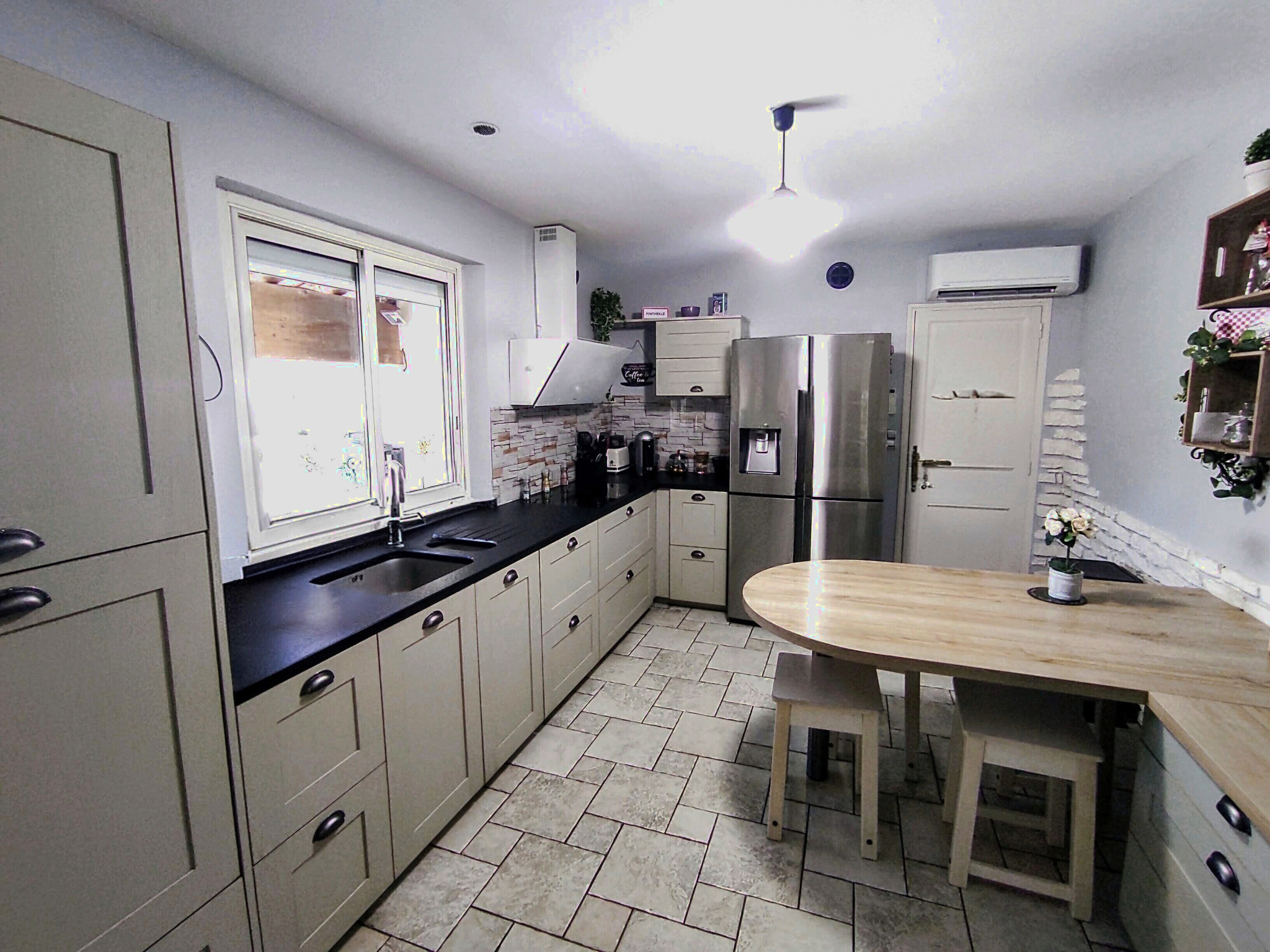 Garage de 68 m², climatisation, convecteurs, ballon thermodynamique, adoucisseur d’eau et portail électrique.