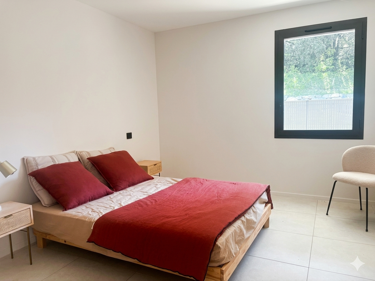 Très bel appartement entièrement rénové de type 2 d'une superficie de 44 m2 avec jardin de 35 m2, situé sur les Hauteurs de Vaison la Romaine au sein d'une résidence de standing sécurisée.
