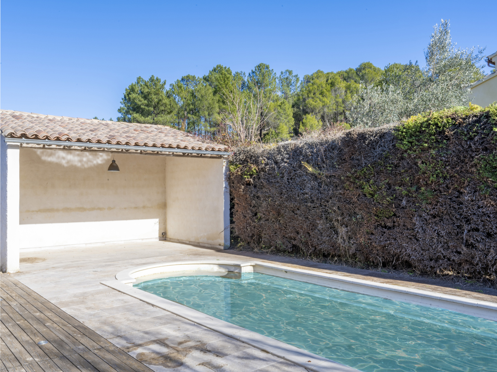 Côté extérieurs, le jardin arboré est agrémenté d’une belle piscine et d'un pool house.