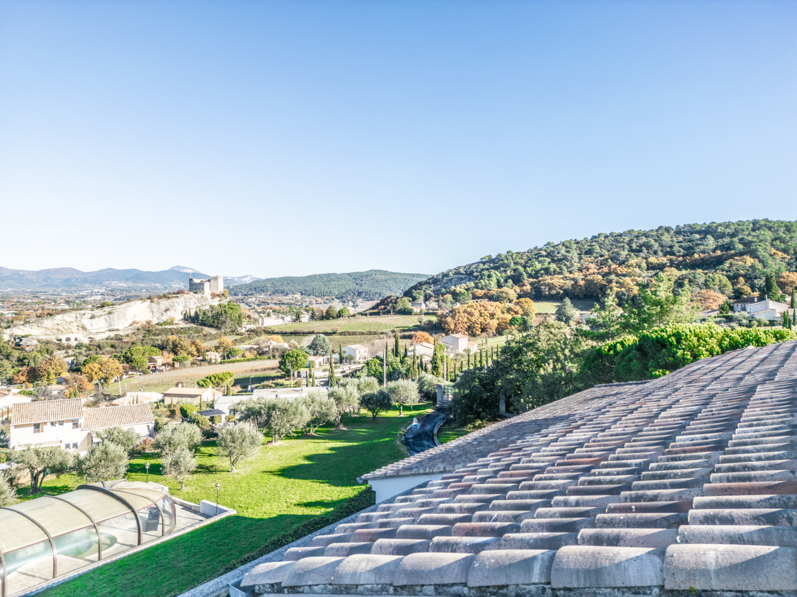 Vous rêvez d’un lieu unique, où chaque regard porté sur l’horizon raconte une histoire ? Cette propriété d’exception pour amoureux de panoramas aux accents de Provence, perchée au sommet d’une colline, vous offre une vue imprenable sur la cité médiévale de la très prisée Vaison-la-Romaine, son Château, ses vignobles et ses douces collines.