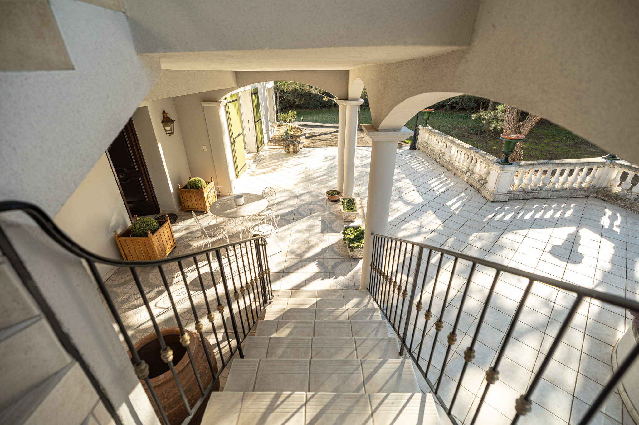 À quelques minutes du centre-ville et de son ambiance vibrante, cette villa s’épanouit sur un terrain clos de 4 800 m², préservé du tumulte et bercé par le chant des cigales.