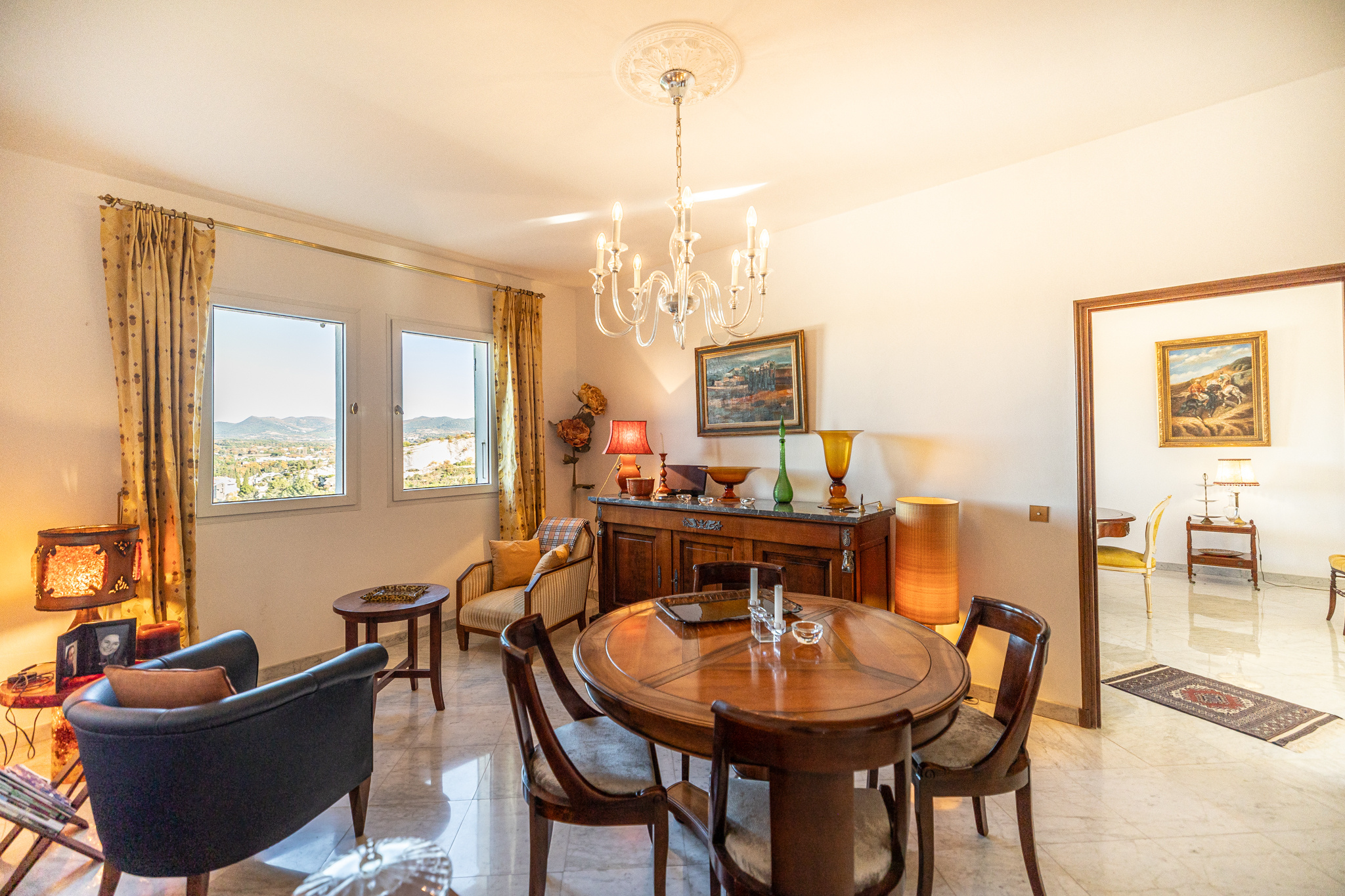 L’intérieur marie élégance et intemporalité, sublimé par des matériaux nobles : marbre au sol, portes en chêne, cuisine Godin, robinetterie Horus… De vastes ouvertures laissent entrer la lumière et dévoilent à chaque instant un panorama époustouflant, comme un tableau vivant.