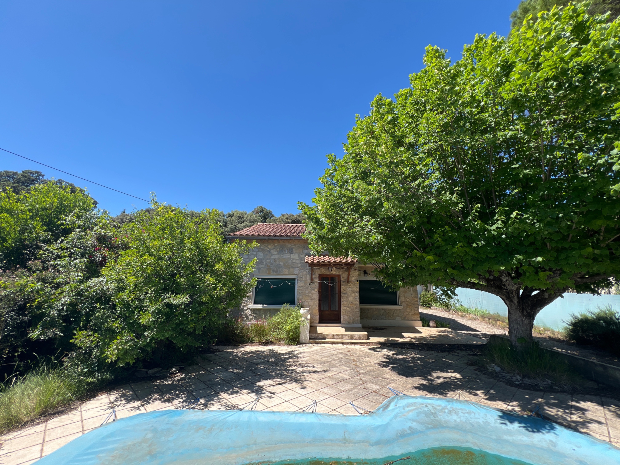 A l'ombre de son tilleul, à l'abri du soleil méditerranéen, vous pourrez prendre vos repas estivaux sur sa spacieuse terrasse exposée plein sud donnant sur la piscine.