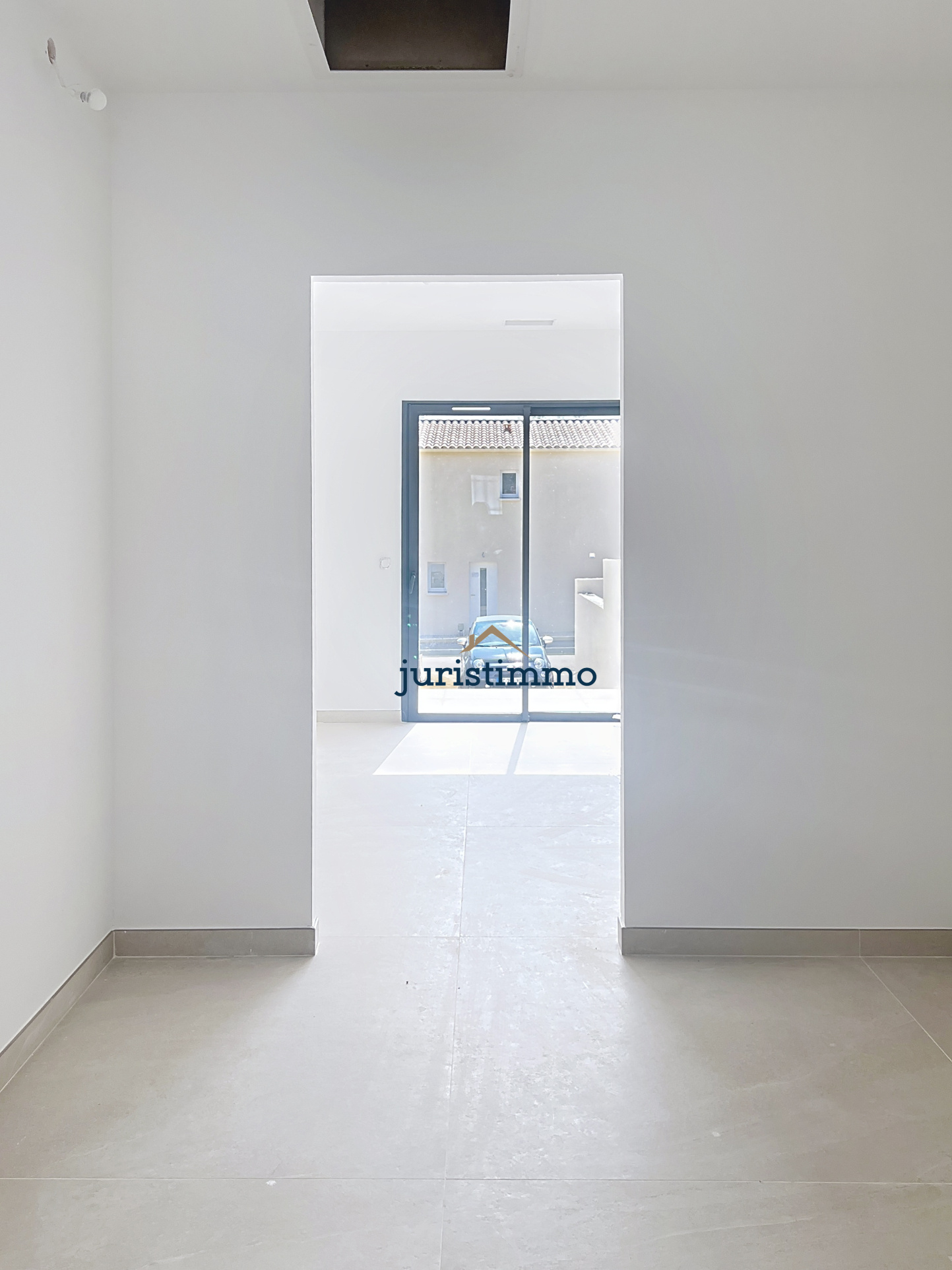 Dès l’entrée, de hautes ouvertures verticales installent immédiatement une atmosphère graphique très contemporaine. Ici, la lumière fait pleinement partie du projet architectural : elle accompagne les lignes, souligne les volumes et renforce la sensation d’espace autant que la pureté de l’écriture intérieure.