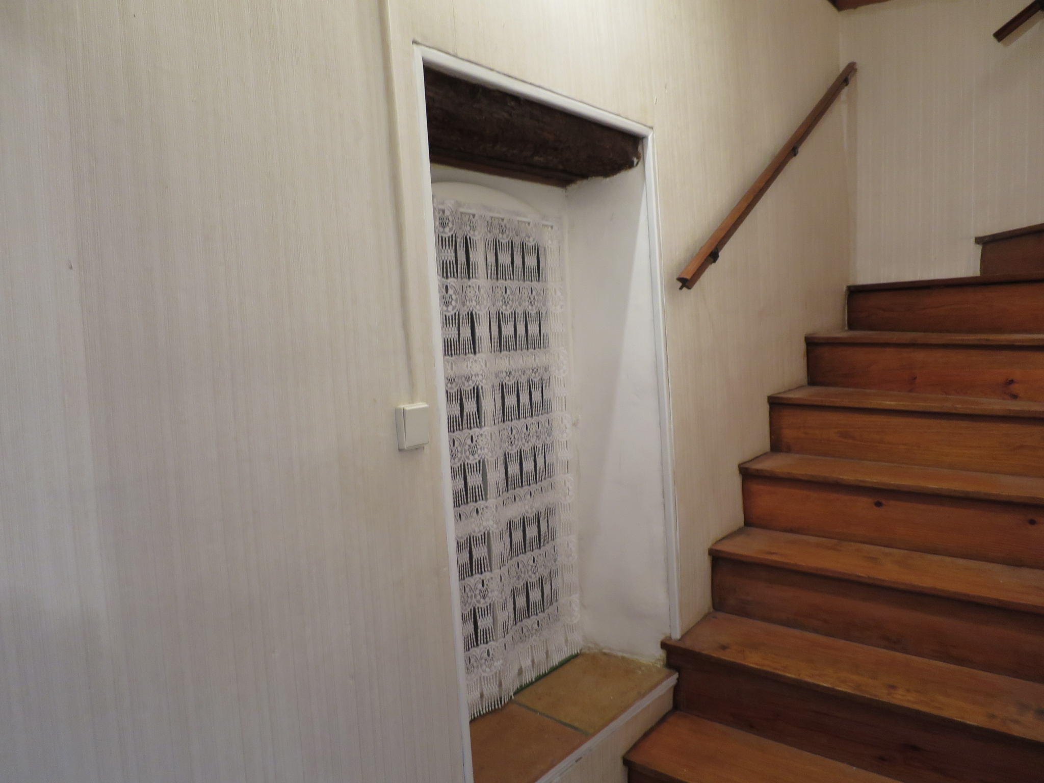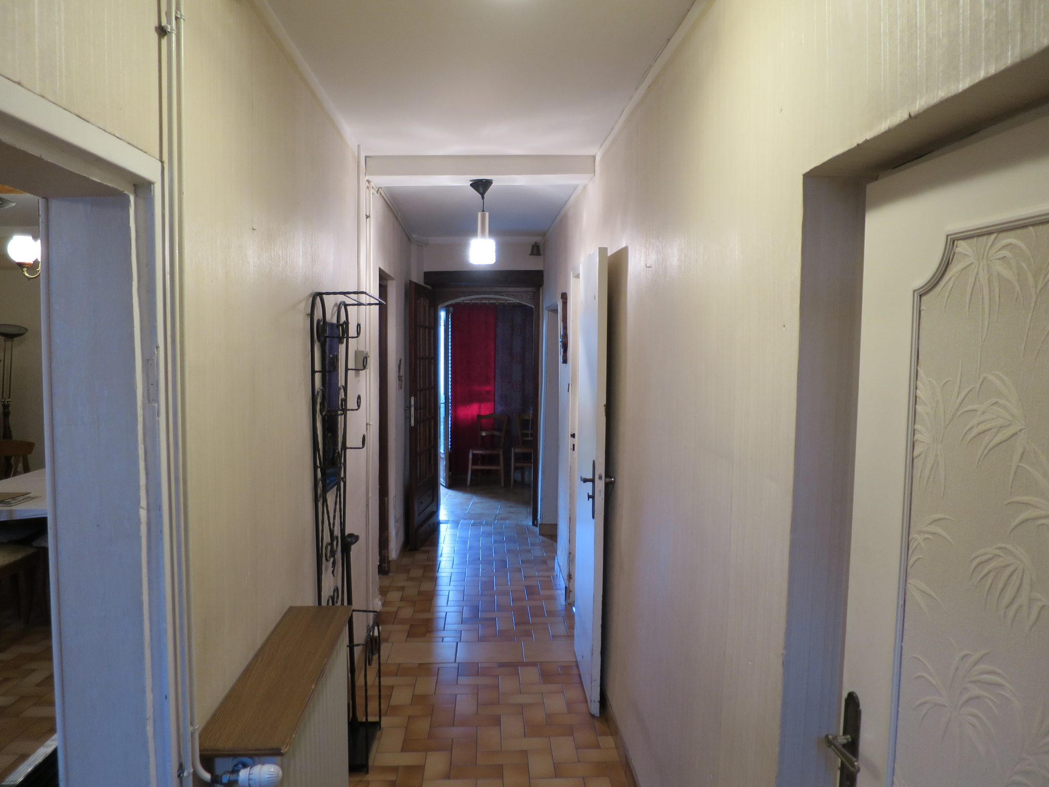 Agréable maison de ville d'environ 130 m2 habitable avec chauffage central au fioul. Ré-de-chaussée: entrée, couloir traversant, véranda,