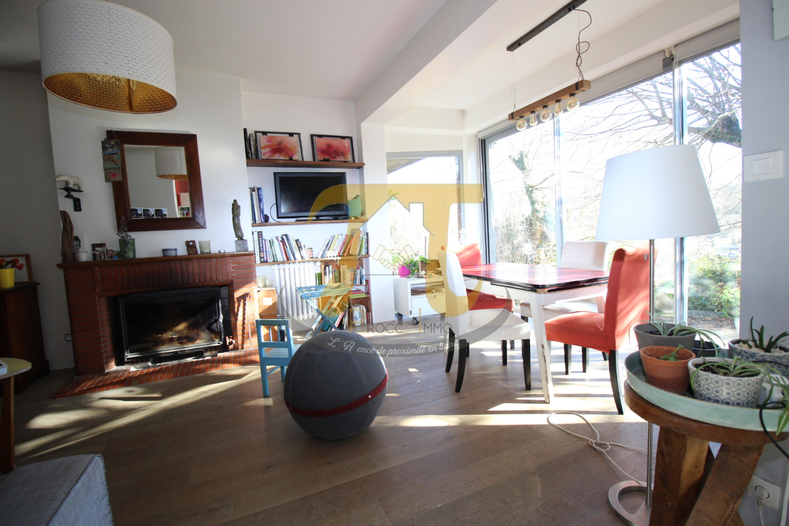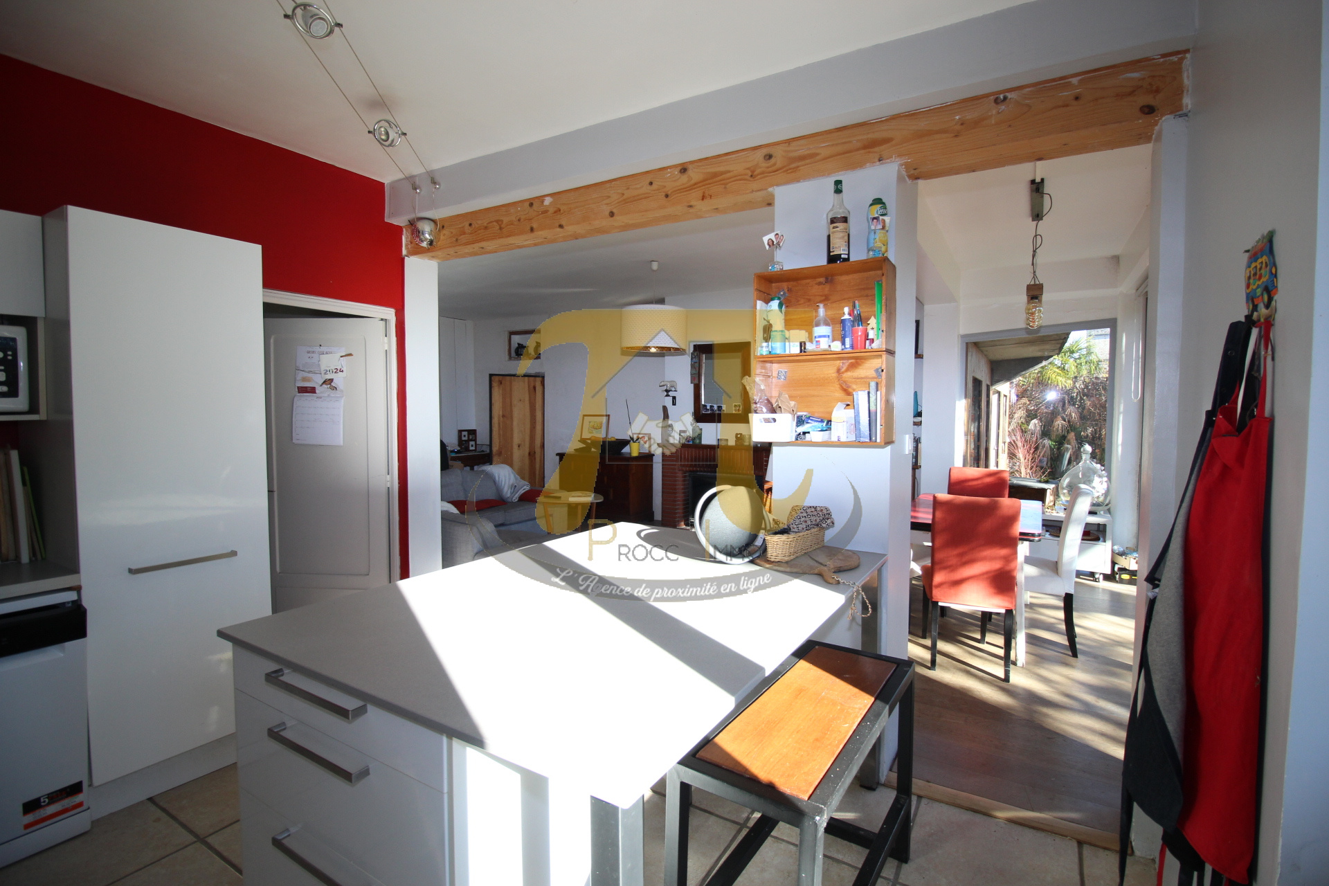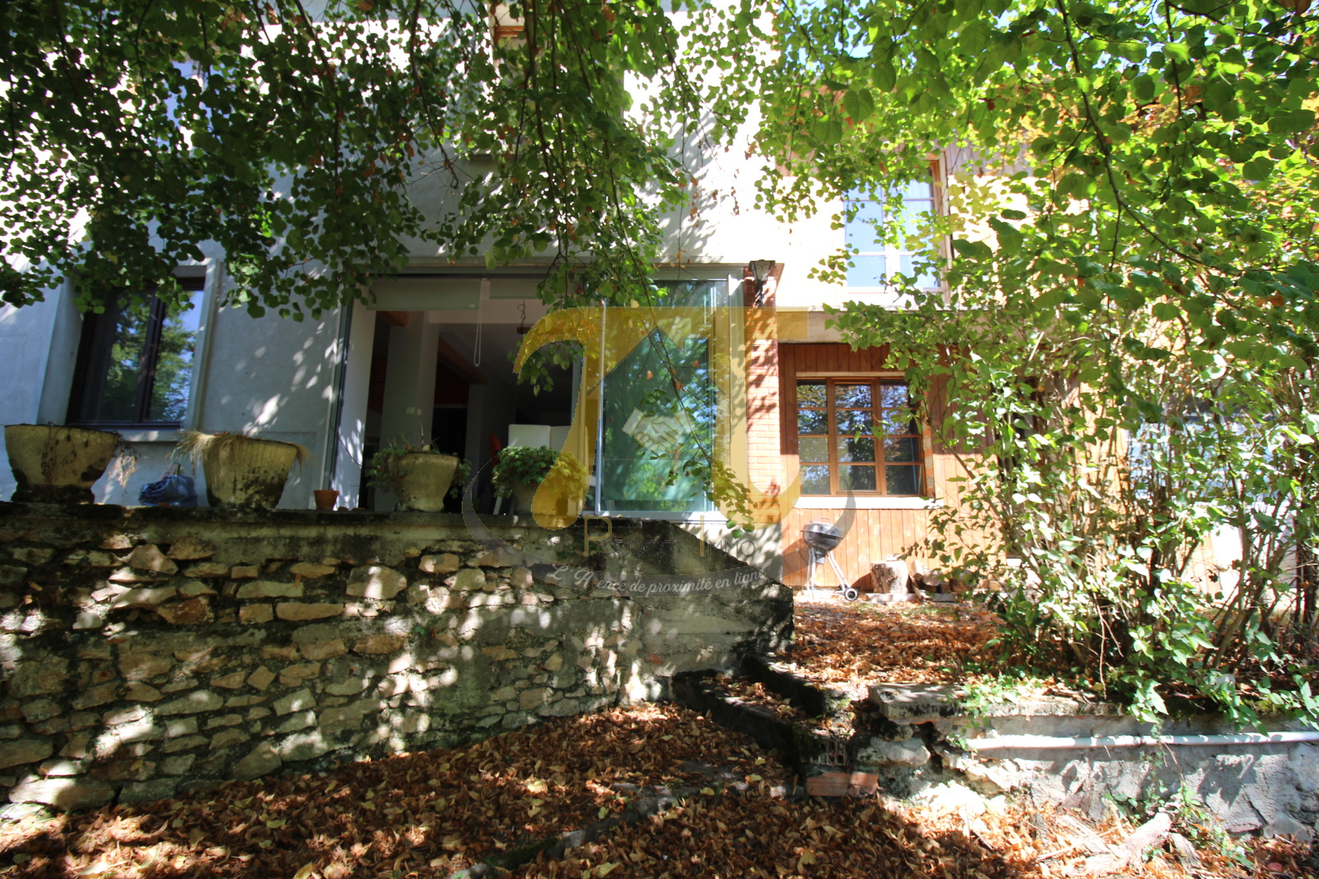 -Maison lumineuse et chaleureuse, offrant un espace de vie ouvert sur une très agréable terrasse plein sud, avec arbres d'ombrage pour l'été.
