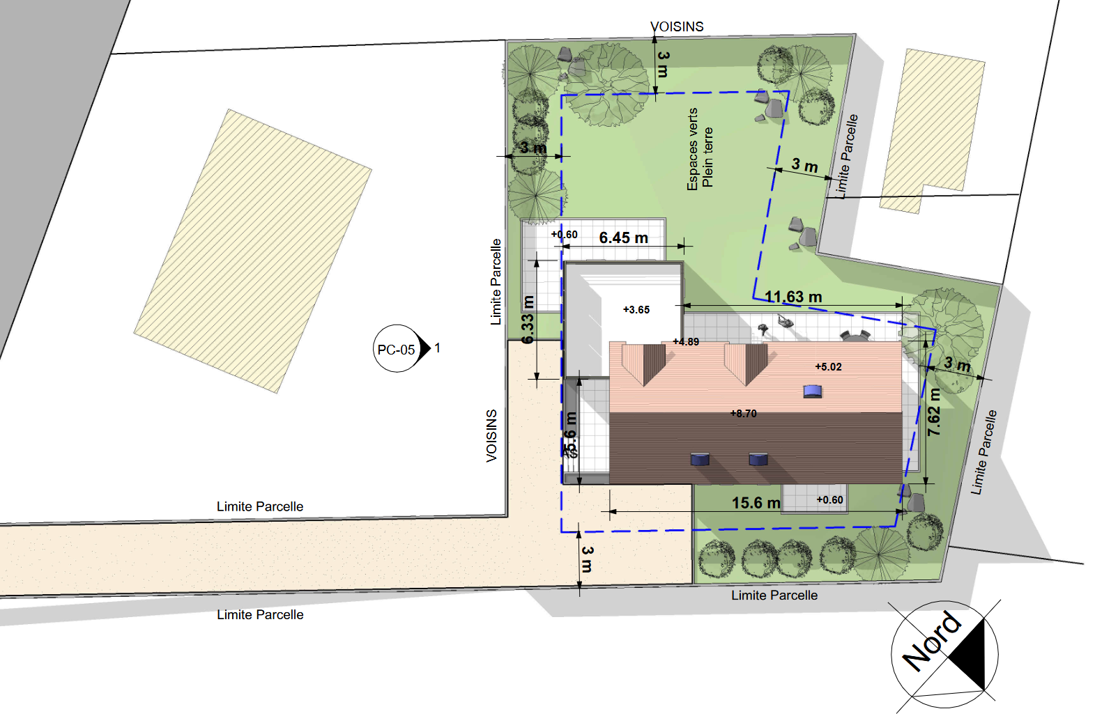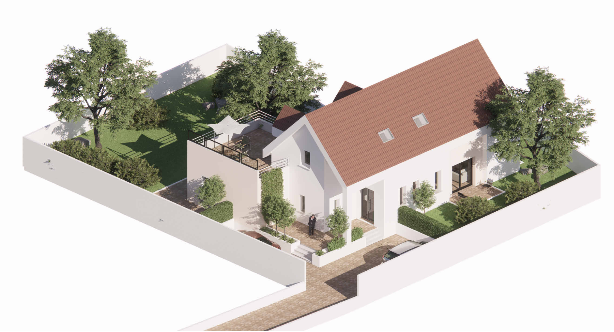Un projet de construction avait été étudié sur ce terrain pour une maison individuelle d’environ 148 m² avec 4 chambres. Ce projet n’est pas imposé, le terrain est vendu libre de constructeur, laissant une totale liberté au futur acquéreur dans la conception de son projet.