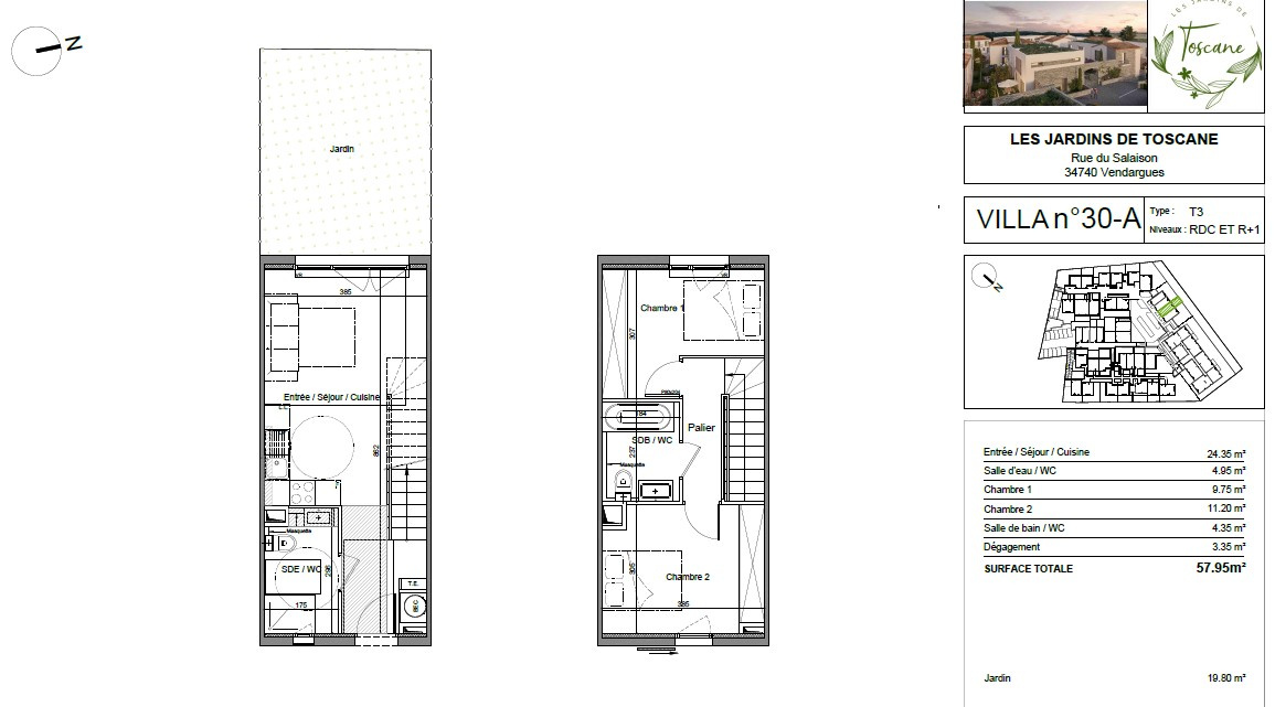 BRS – OPPORTUNITÉ À VENDARGUES (RUE DE SALAISON) – VILLA DUPLEX 3 PIÈCES AVEC JARDIN ET PARKING
