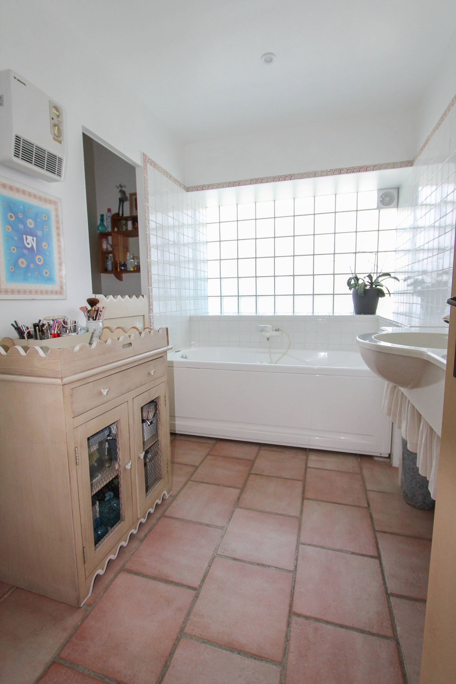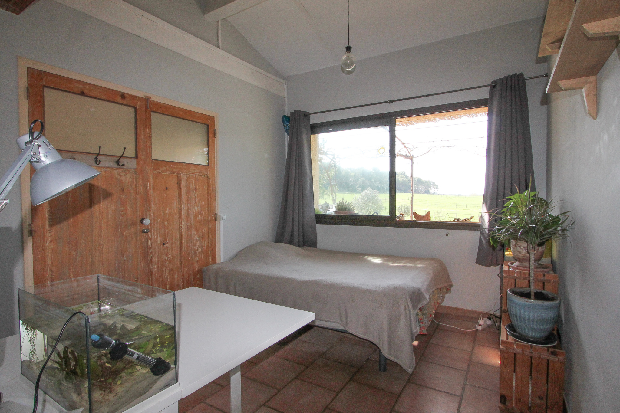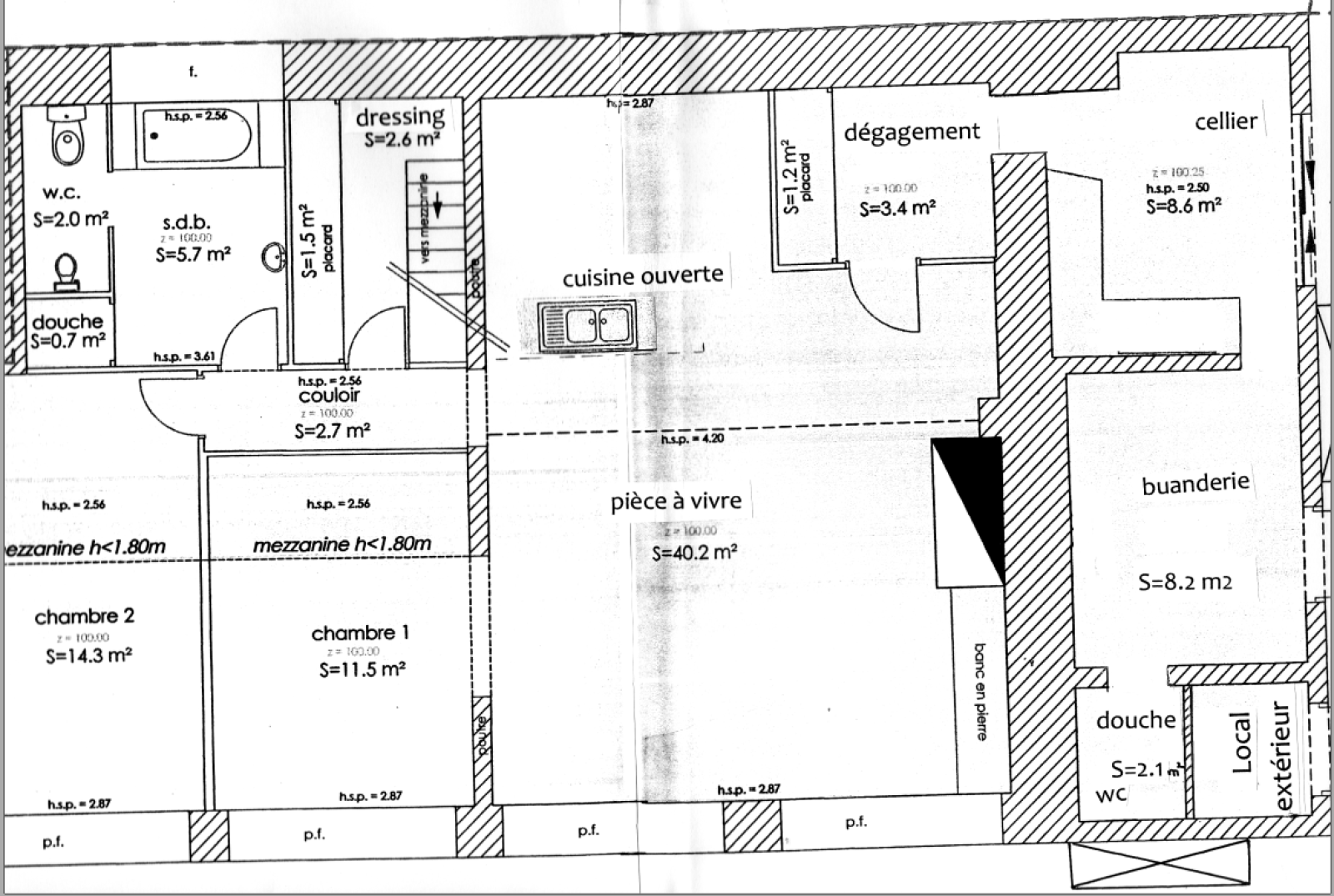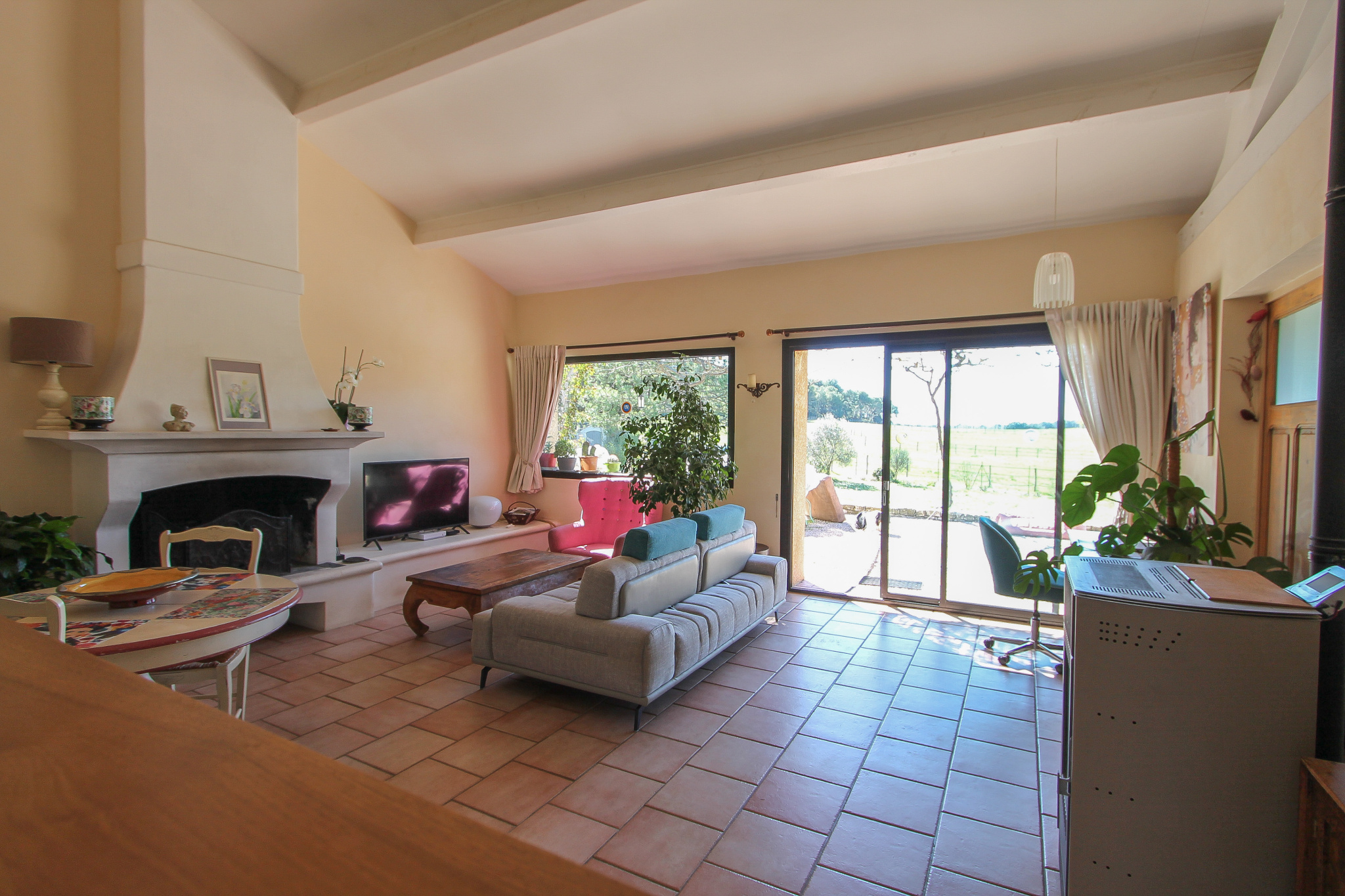 Elle se compose d'une agréable pièce à vivre d'environ 40 m² avec de beaux volumes, cheminée, cuisine américaine et des baies vitrées donnant sur un joli cadre bucolique. Un couloir dessert la partie nuit, avec deux chambres d'environ 14 m² et 11,5 m², une salle de bains équipée également d'une douche et wc de 8 m², un dressing de 4 m² avec un accès à deux mezzanines (hauteur moins d'1m80), un dégagement avec placards de 4,6 m², un grand cellier de 8,6 m² avec un accès à l'extérieur, une buanderie d'environ 8 m² avec mezzanine (hauteur moins d'1m80) et une salle d'eau avec wc de 2 m².
