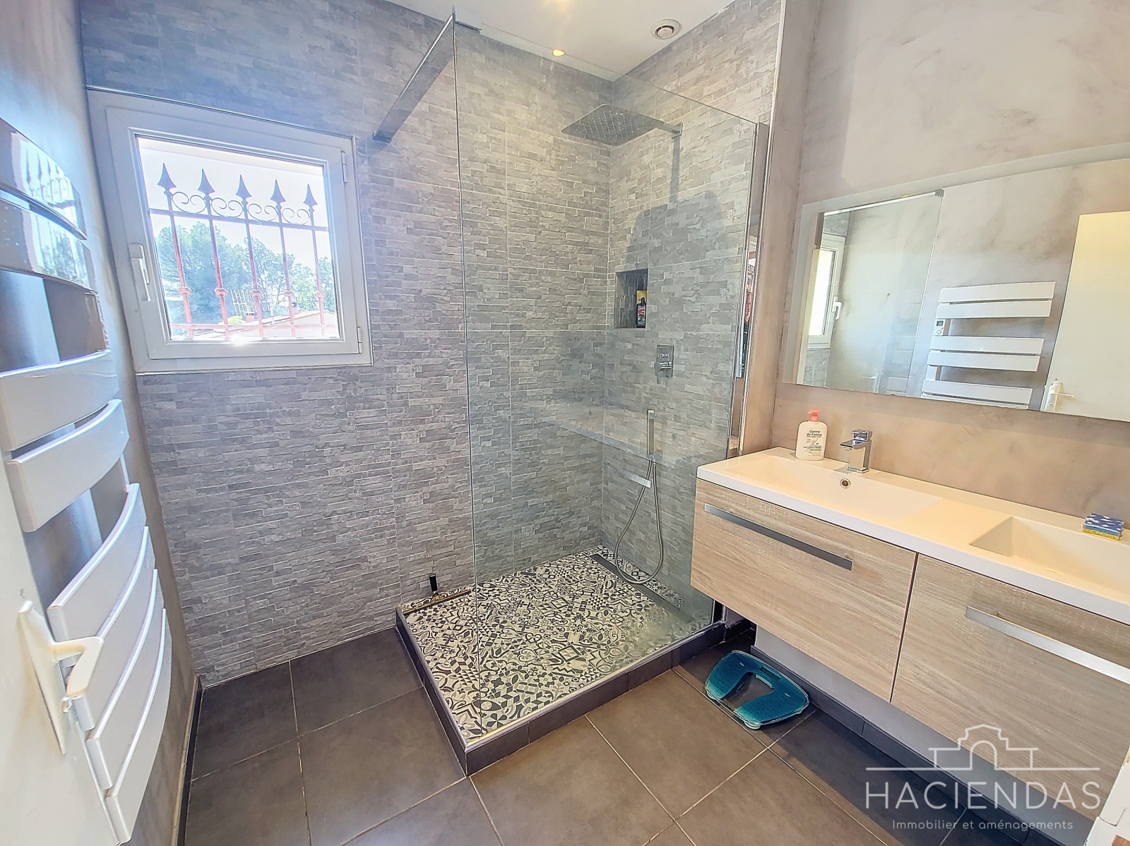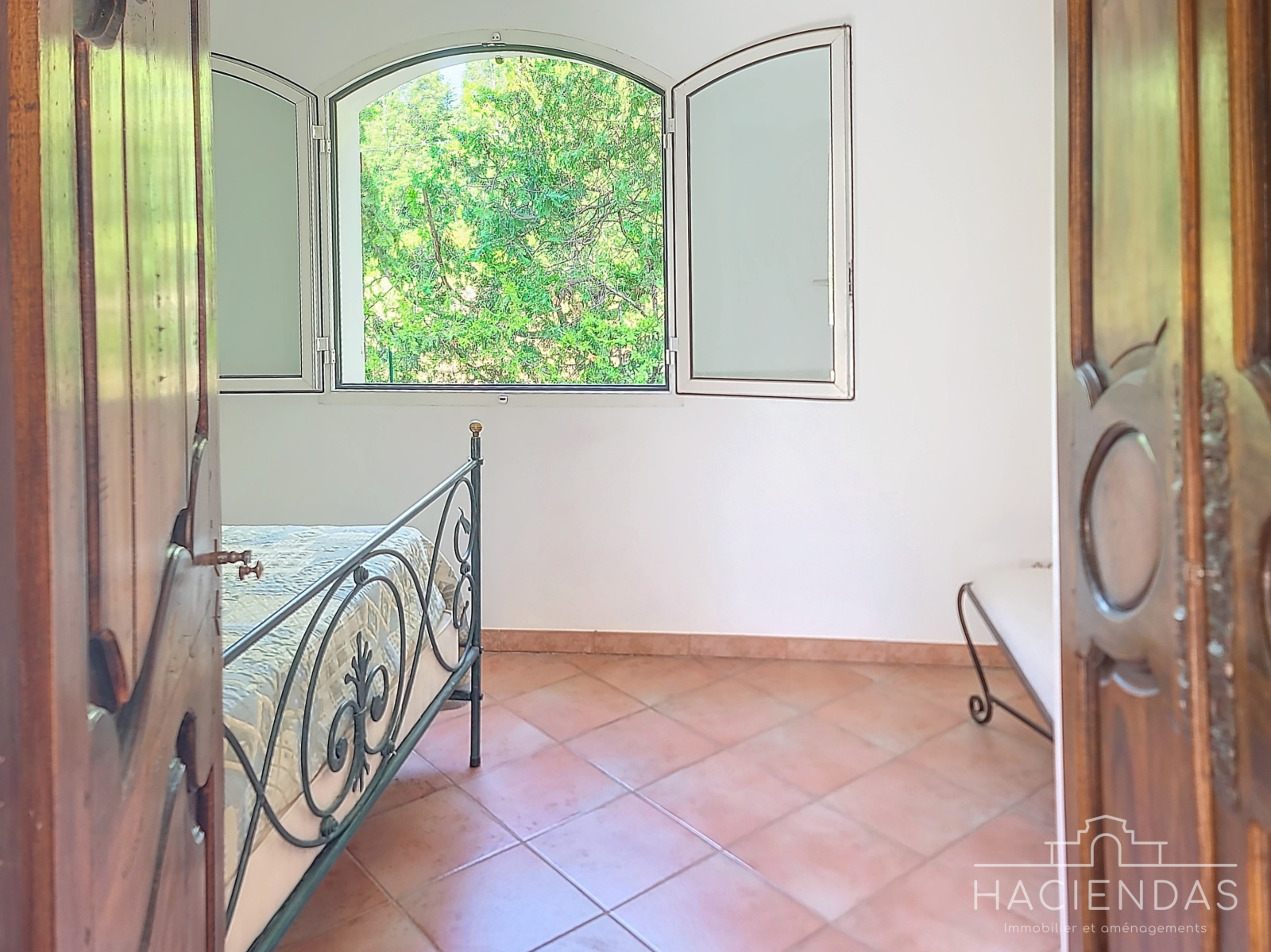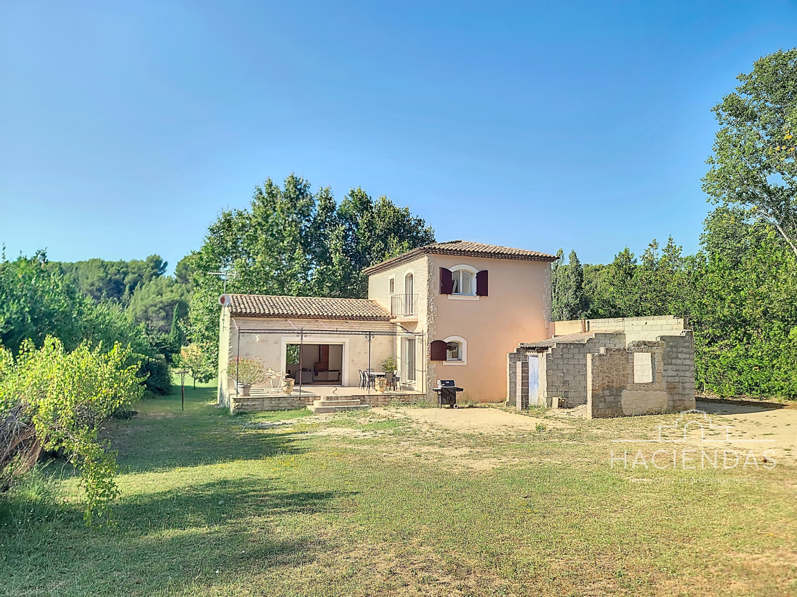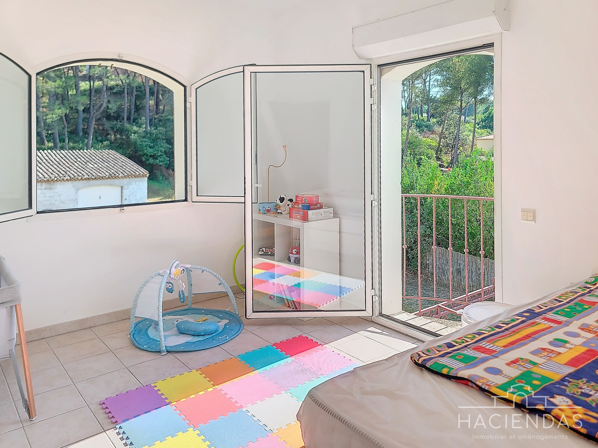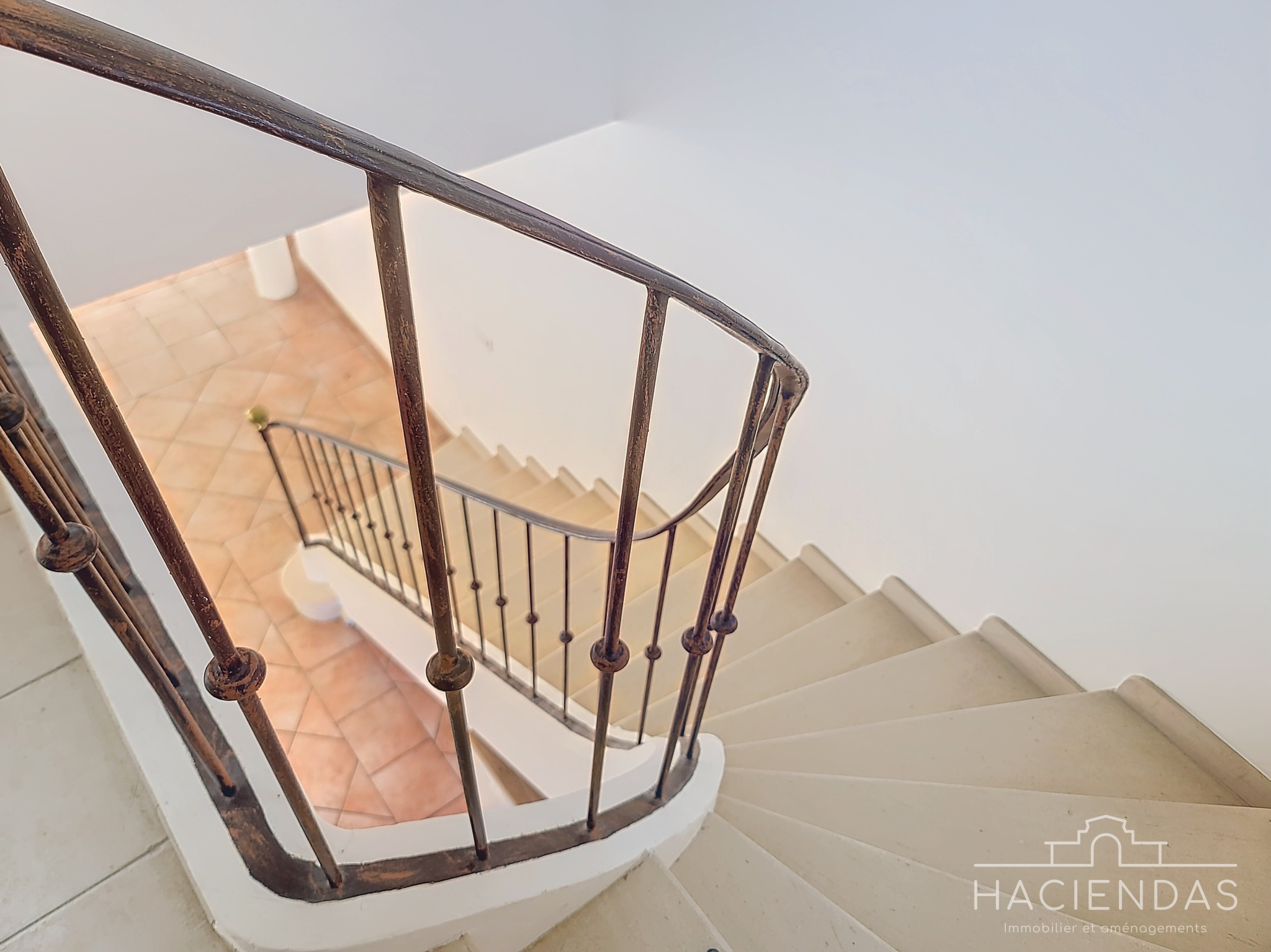 On accède par un bel escalier en fer forgé, au palier du 1er étage, ce dernier distribuant sur 2 autres chambres lumineuses, 1 espace buanderie, un grande salle de douche et un WC séparés. A l'extérieur, un très beau terrain plat et piscinable qui plus est doté d'un forage.