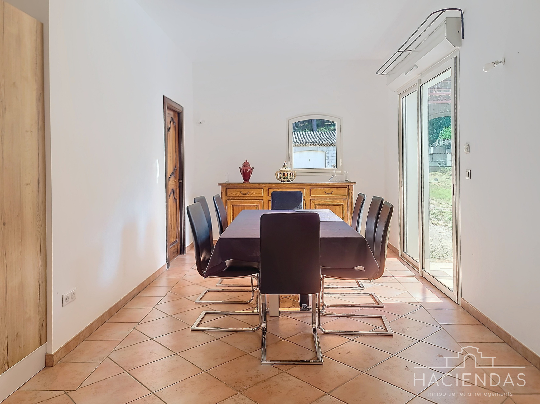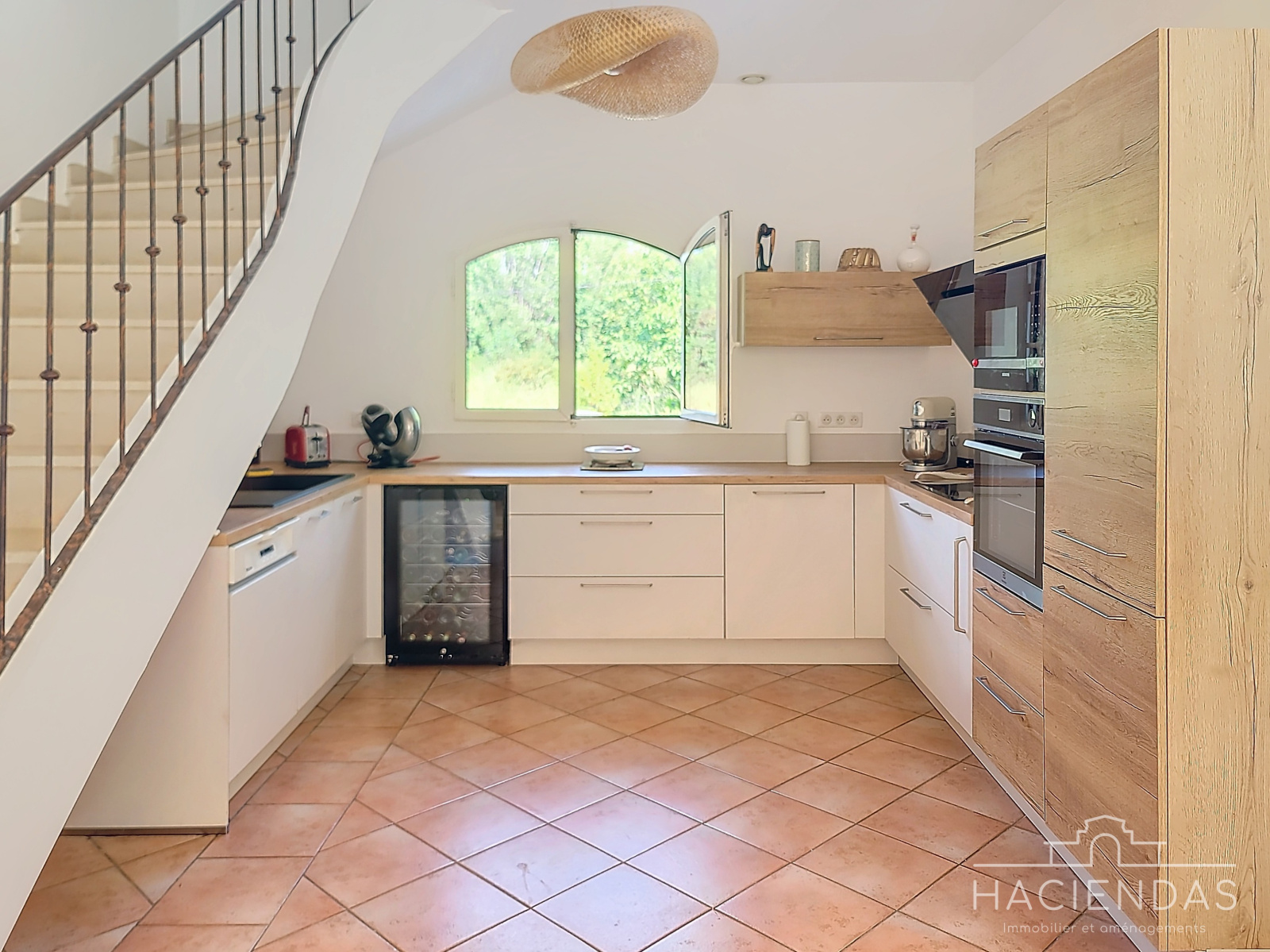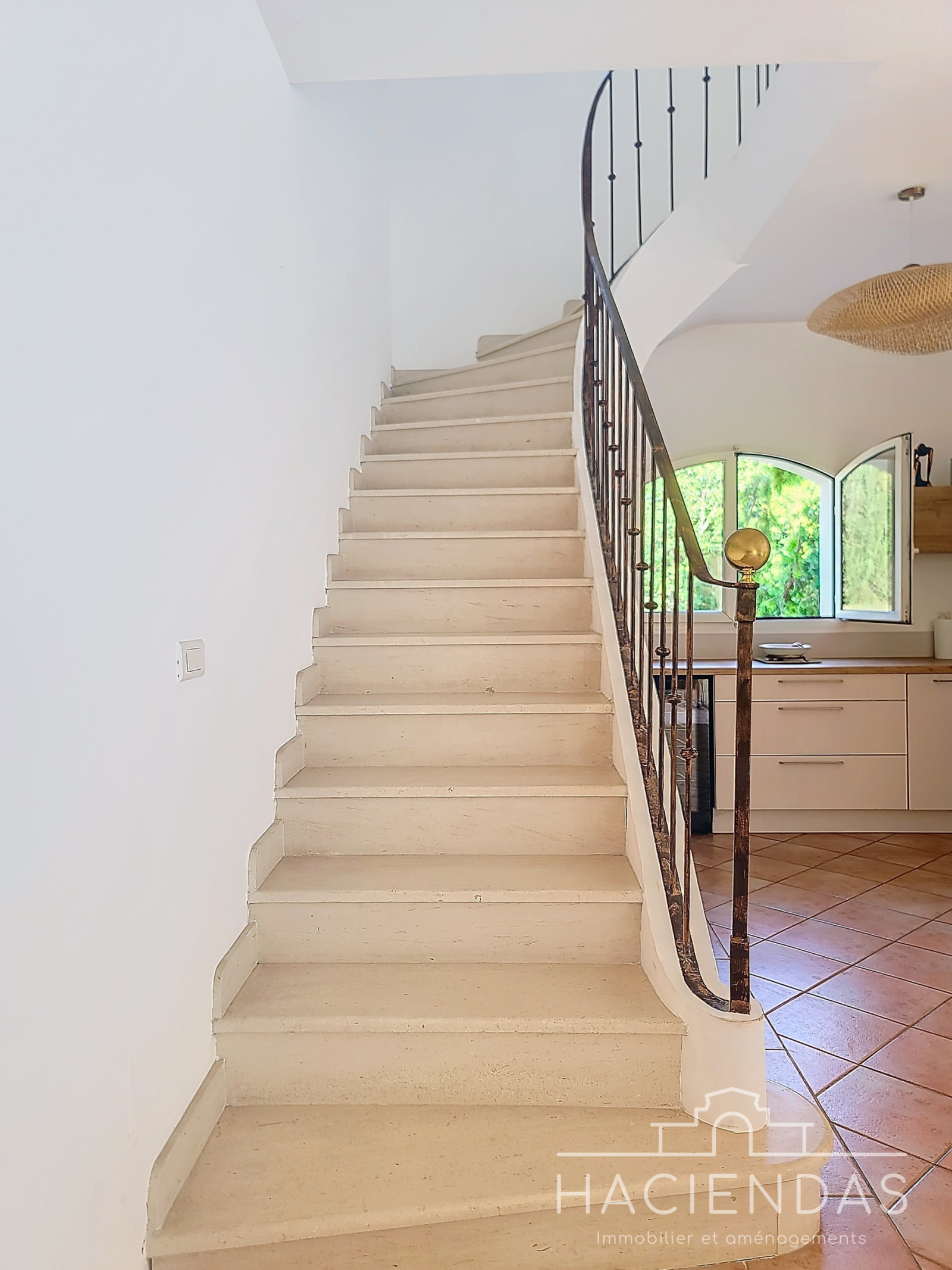 La maison, de style traditionnel (portes en bois massifs, sols en pierre) et en très bon état, s'érige sur 2 étages hauts de plafond baignés de lumière. On y retrouve un grand séjour double (45m²) donnant sur une belle terrasse avec vue dégagée, un espace salle-à -manger, une très belle cuisine ouverte et une grande chambre dotée de beaux volumes.