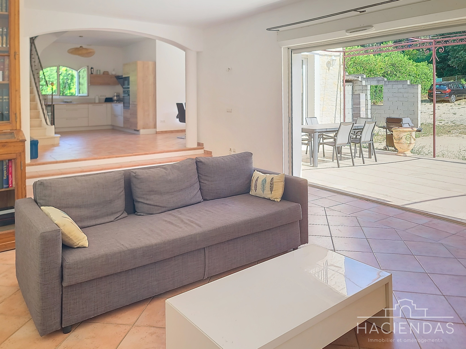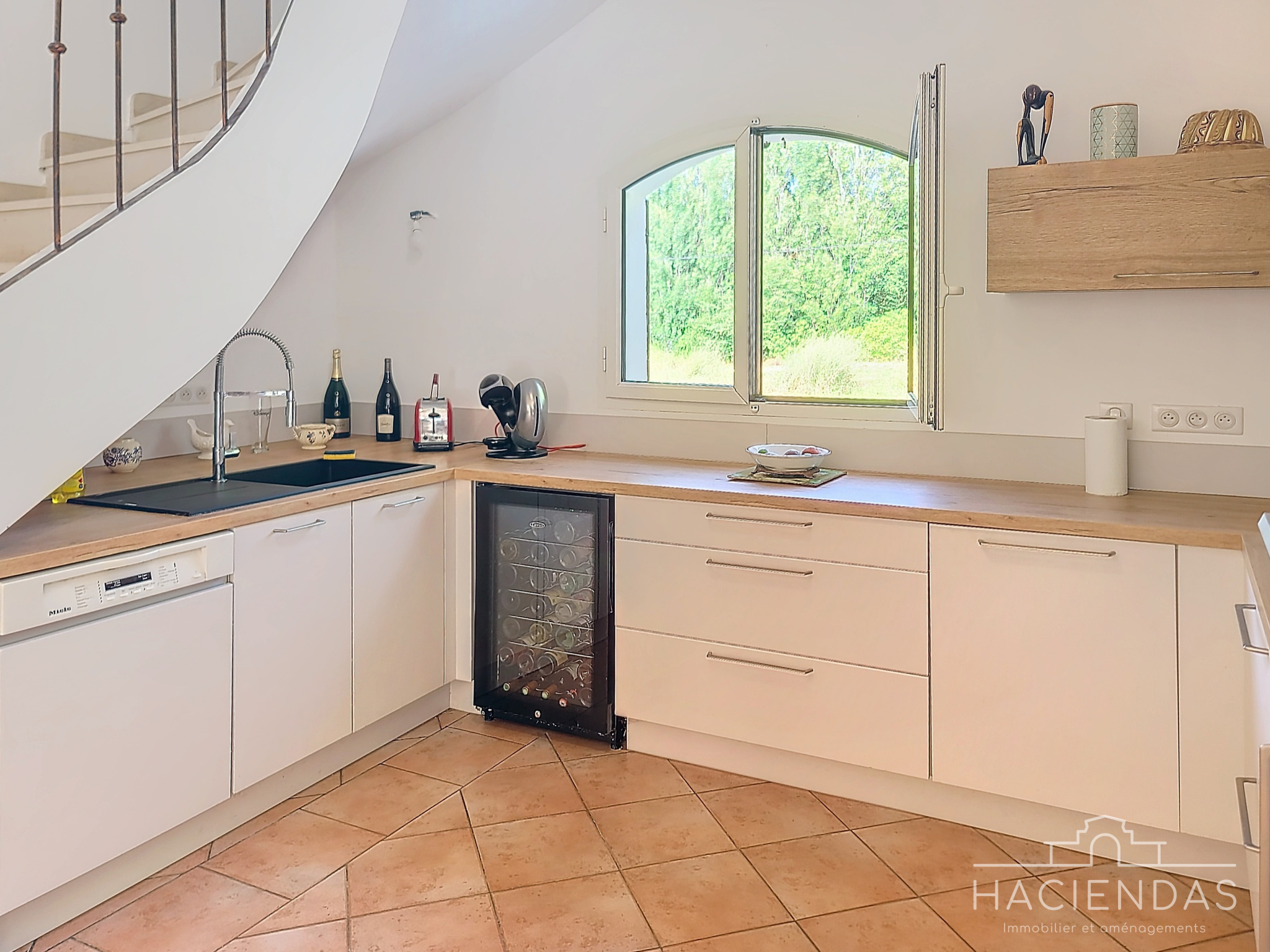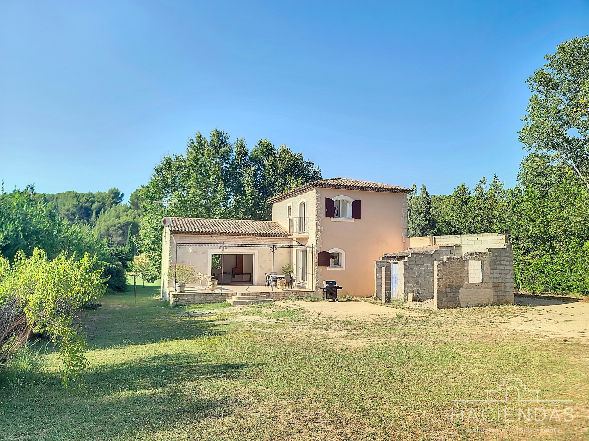 La maison, de style traditionnel (portes en bois massifs, sols en pierre) et en très bon état, s'érige sur 2 étages hauts de plafond baignés de lumière. On y retrouve un grand séjour double (45m²) donnant sur une belle terrasse avec vue dégagée, un espace salle-à -manger, une très belle cuisine ouverte et une grande chambre dotée de beaux volumes.
