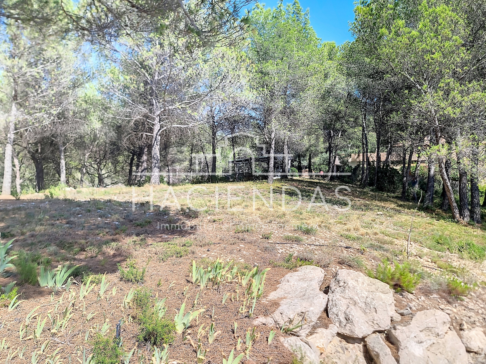Joliment arboré et exposé sud, il bénéficie, en position dominante dans la colline, d'un contexte calme entouré de nature et pinède, ainsi que d'une vue dégagée.