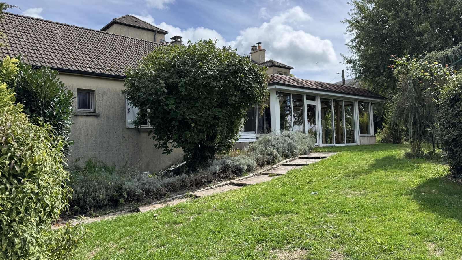 Le jardin abrite un verger, une roseraie, une serre ainsi qu'une surface annexe ( Garages ).