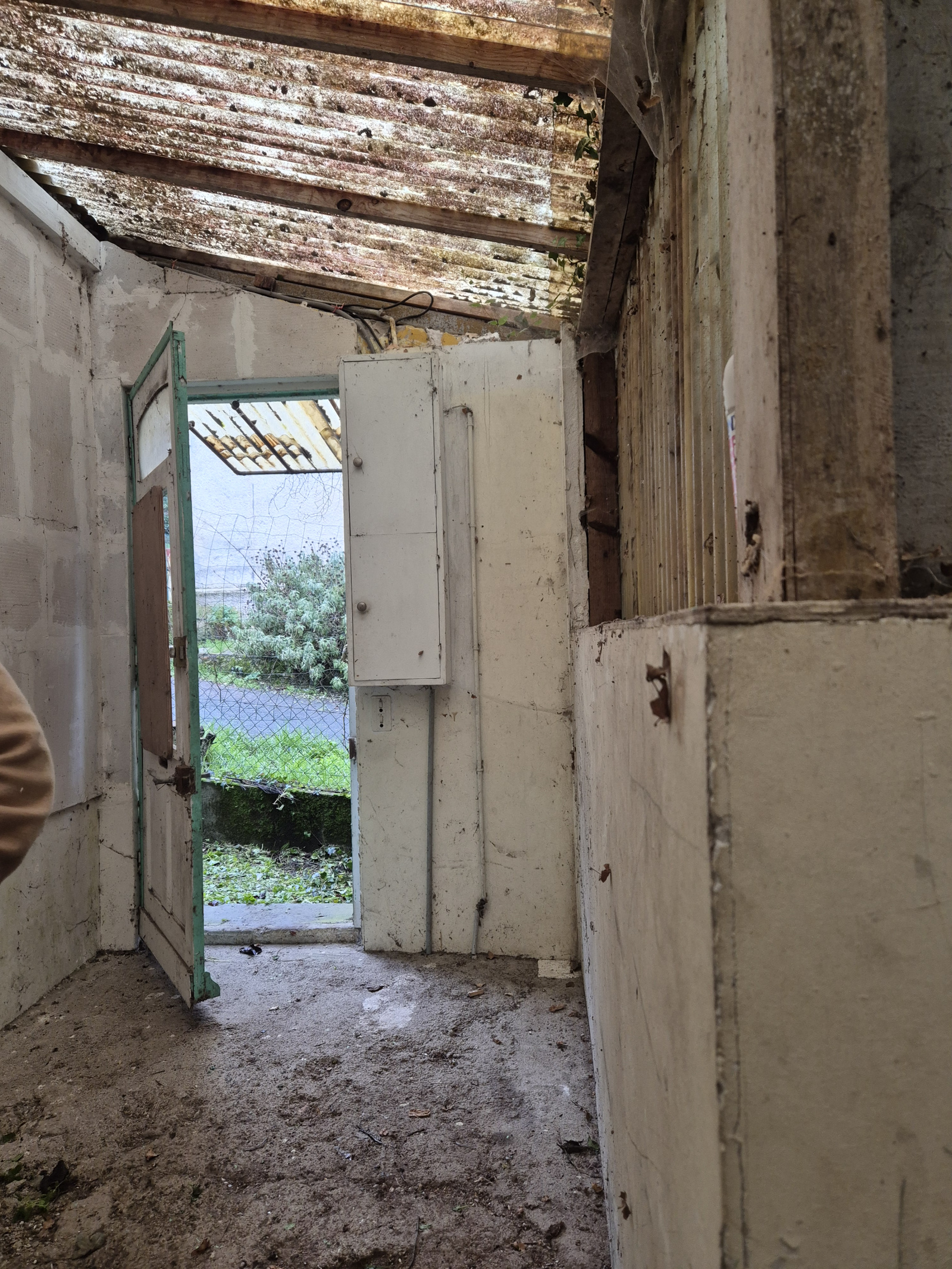 Elle se compose d'une entrée qui dessert deux parties. Deux espaces en extérieur pouvant servir un agrandissement à la maison. Une pièce à vivre ouverte sur la cuisine avec un poêle à bois. Au 1er étage une chambre, un bureau, une salle d'eau avec wc.