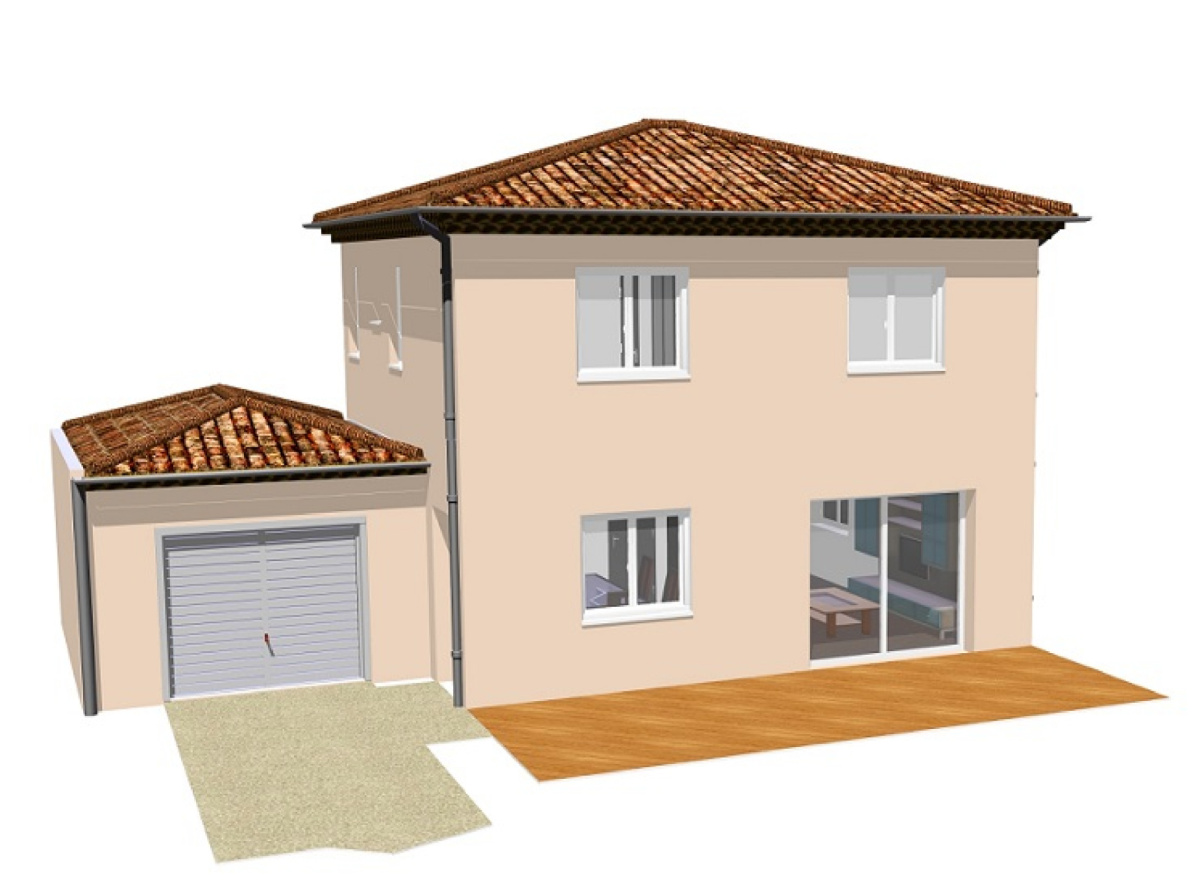 Eléments de construction : Agglo 20cm, doublage Placomur 14cm,VS 0.6m, garage sur radier, couverture tuiles canal, fermettes.