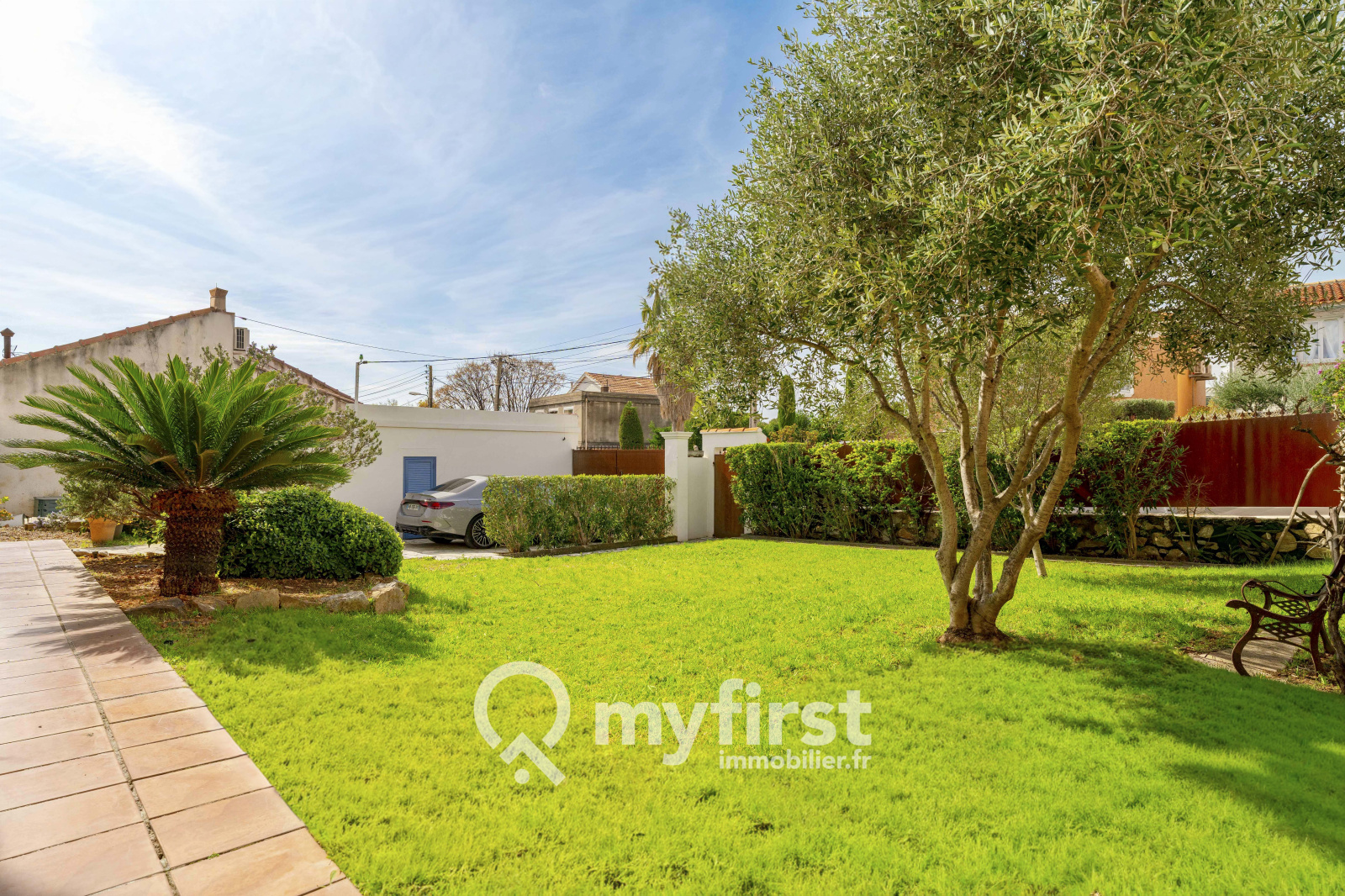 Implantée sur une parcelle d’environ 500 m² entièrement clôturée, la maison s’inscrit au cœur d’un jardin structuré en plusieurs séquences. À l’avant, une belle respiration végétale accueille une pelouse soignée ponctuée d’oliviers, tandis qu’un espace permet de stationner aisément deux véhicules. Un garage spacieux vient compléter l’ensemble, idéal pour un atelier ou un espace de rangement conséquent. La présence d’un forage constitue également un avantage appréciable pour l’entretien du jardin.