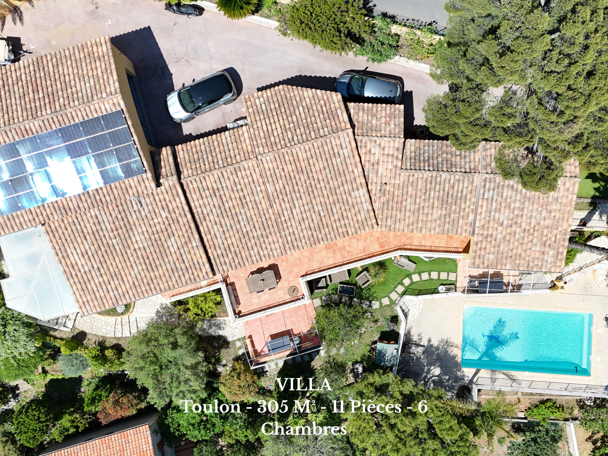 Caractéristiques principales : 11 pièces, dont 6 chambres spacieuses. Une piscine traditionnelle au sel (9,3 x 4,7 m, profondeur 1,20 à 2 m). Un grand garage de 56 m² avec atelier, idéal pour les passionnés ou pour le stockage. Chauffage au sol et climatisation réversible pour un confort optimal en toutes saisons.