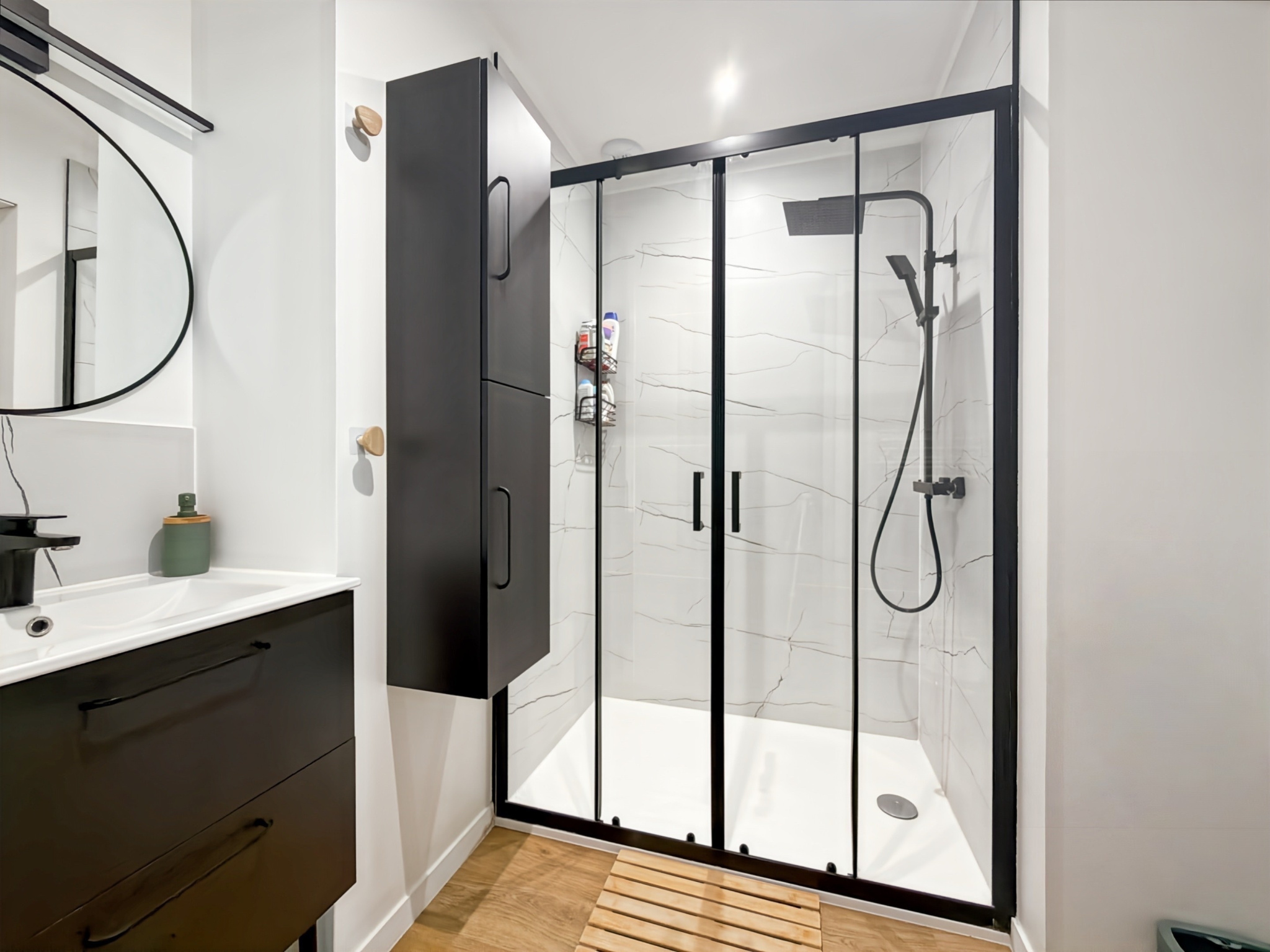 L’espace nuit comprend deux chambres spacieuses, apportant confort et fonctionnalité.