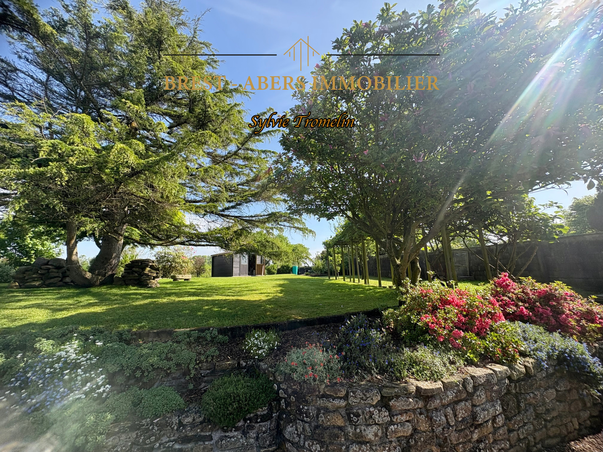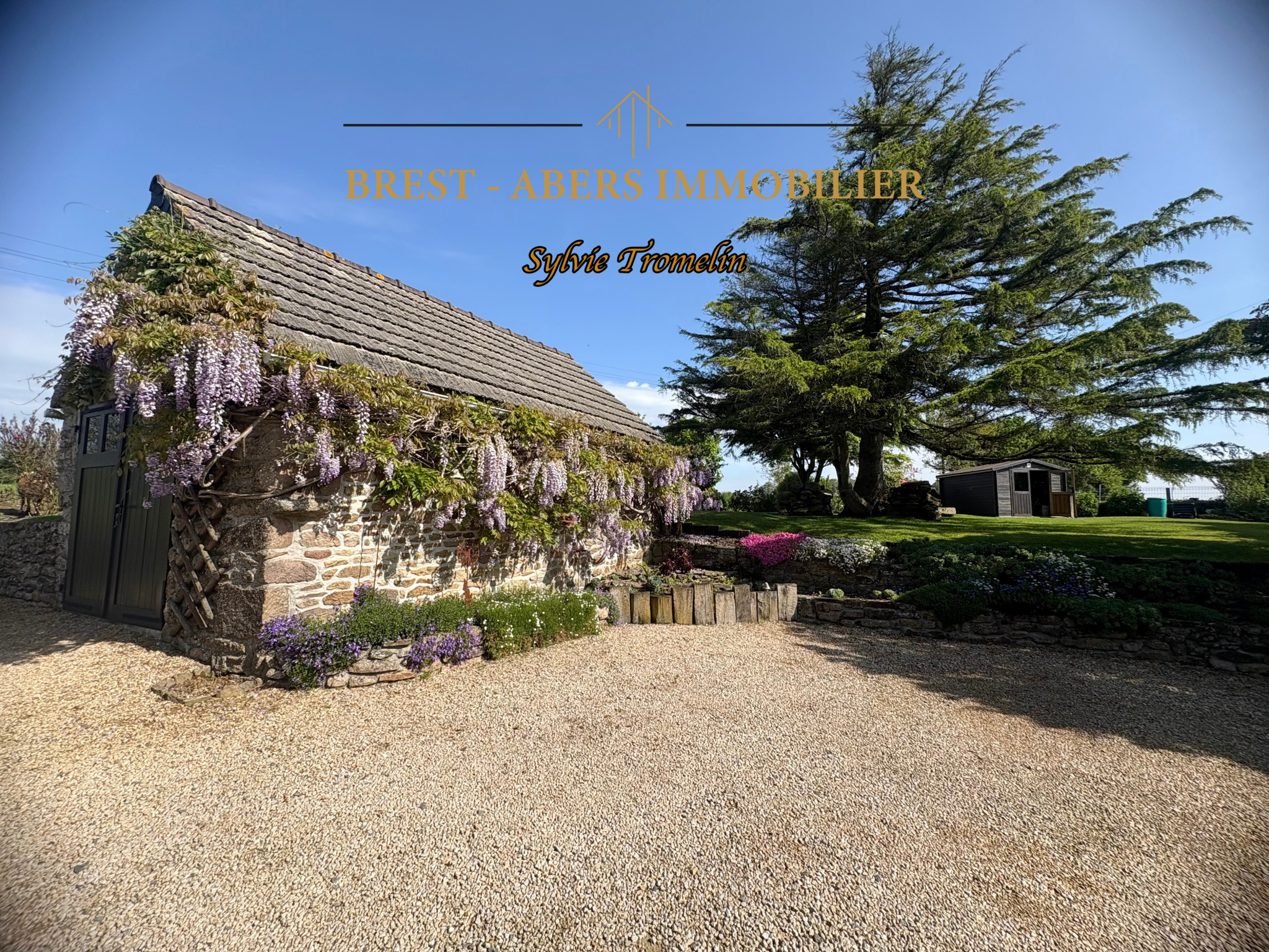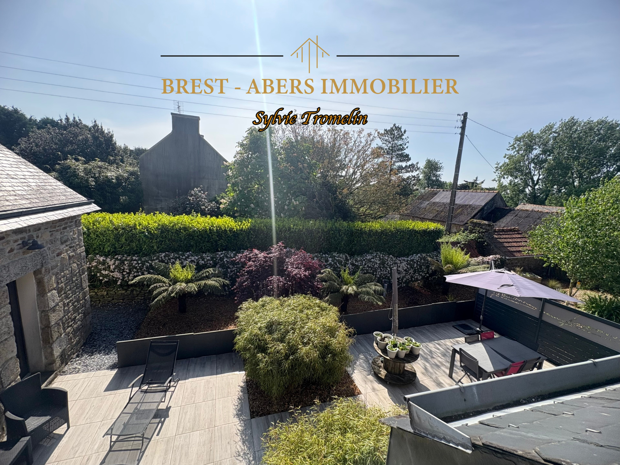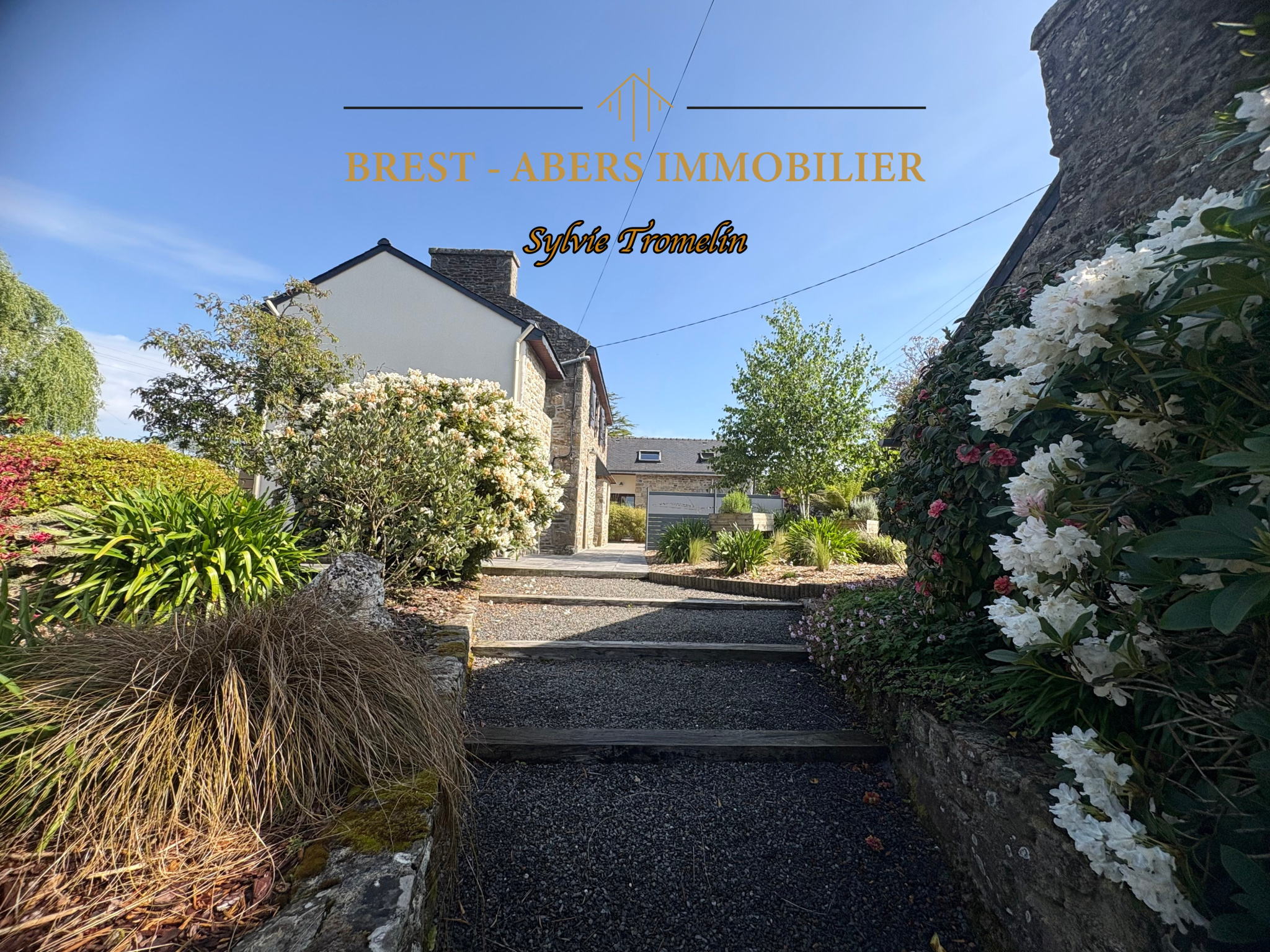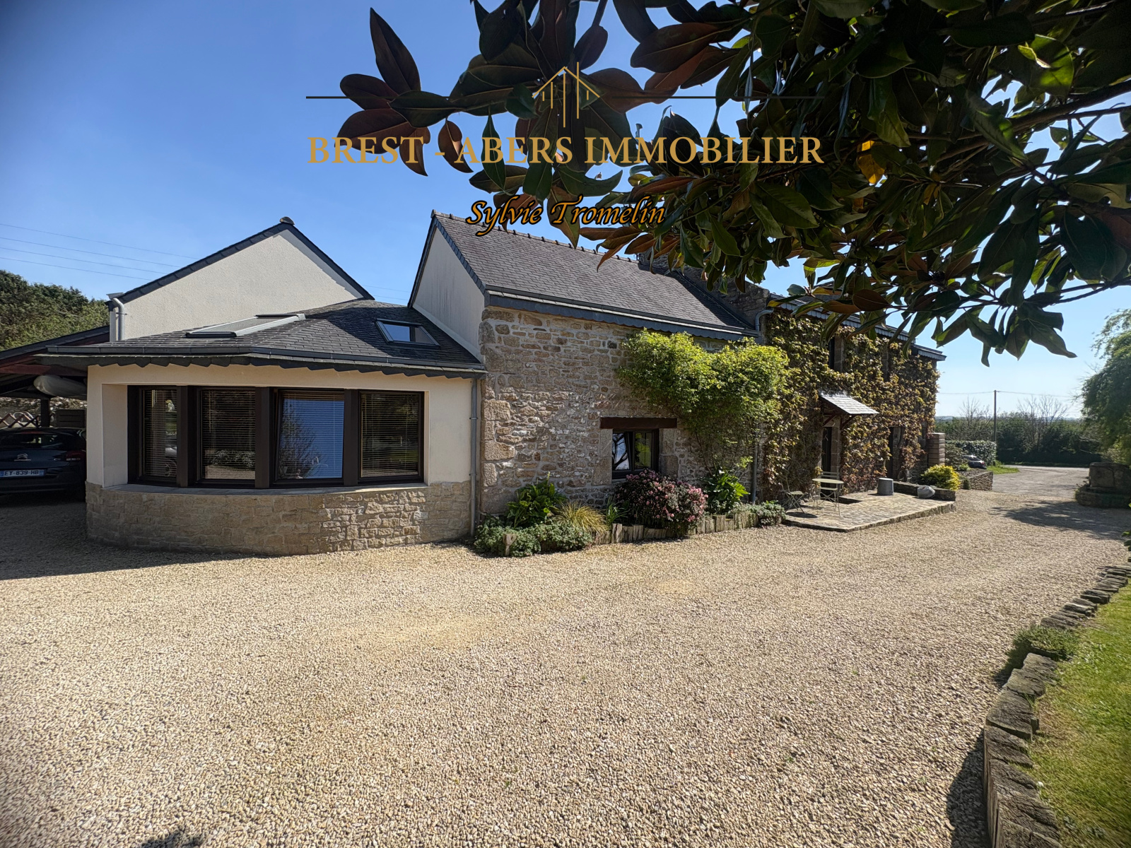 A vendre à PLOUVIEN, 2 kms du centre-bourg, 5 kms de PLABENNEC des écoles et collèges, 8 Kms de LANNILIS, charmante maison en pierre, à la campagne, avec jardin paysagé.