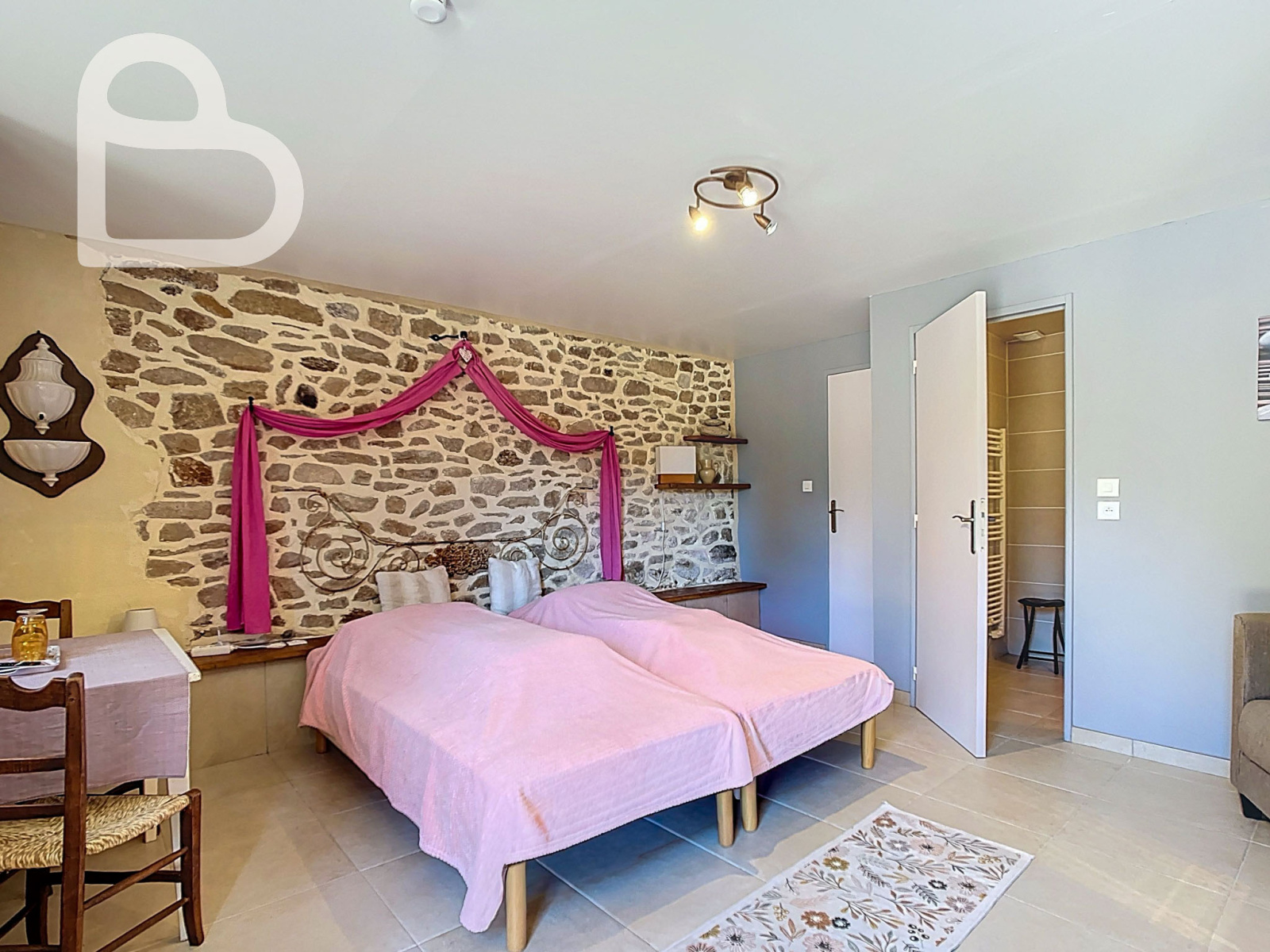 La propriété se compose d’une solide maison en pierre rénovée de trois chambres, d’une piscine, d’une grange, ainsi que d’une vaste dépendance récemment rénovée et dédiée à l’accueil de vacanciers. Cette dernière comprend trois spacieuses chambres d’hôtes, une grande salle à manger avec cuisine équipée, ainsi qu’un gîte indépendant de trois chambres. L’activité touristique actuellement en place peut être reprise immédiatement.