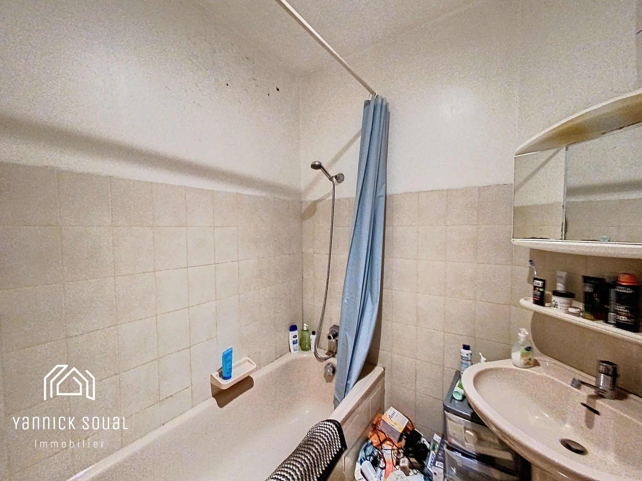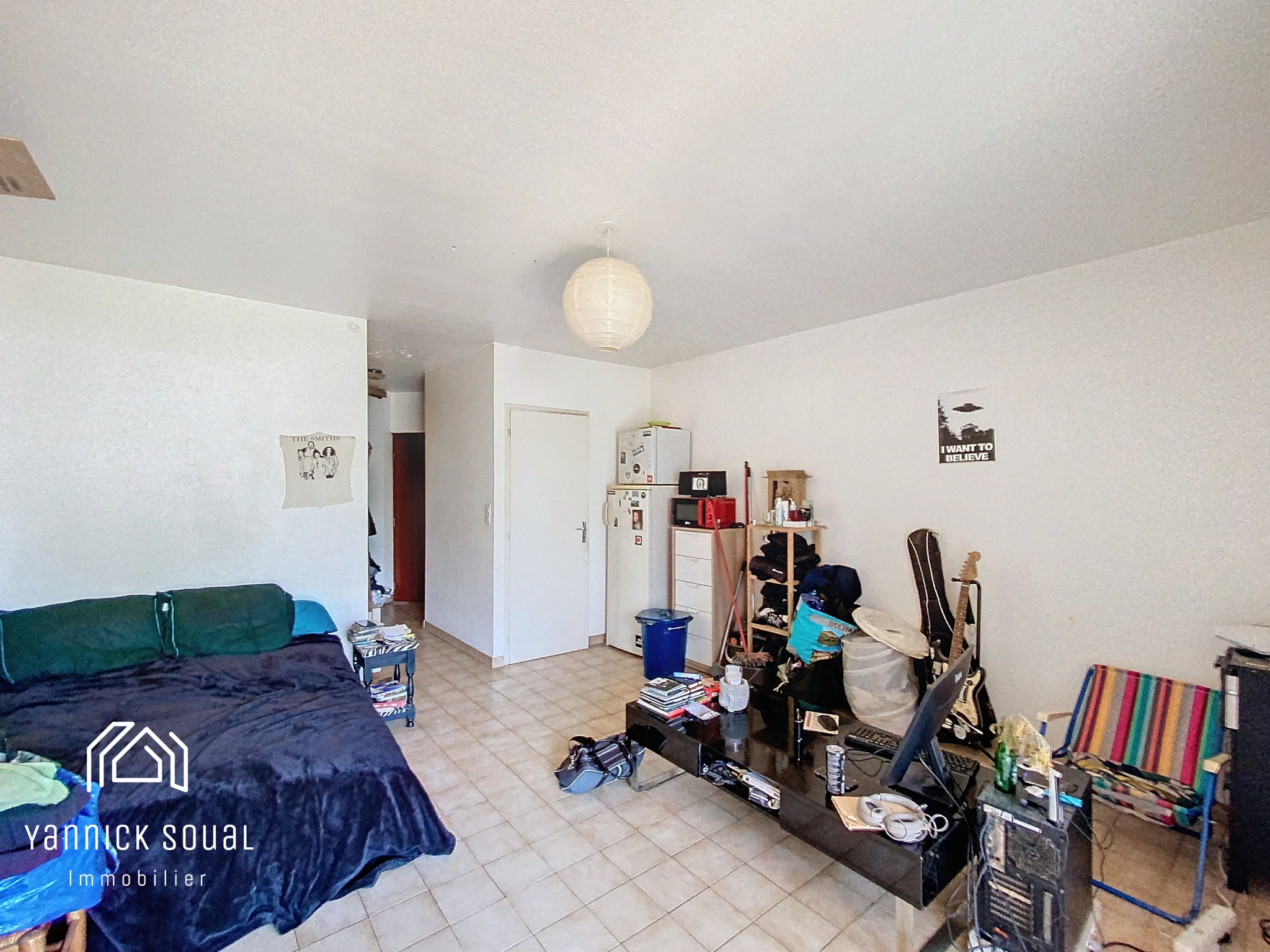 Appartement exposé Sud-Ouest qui comprend : hall d'entrée, salle de bains/WC, coin cuisine, pièce de vie. Actuellement loué 400€ CC (370€ hors charges) jusqu'au 12/08/2026 (congès pour vente en cours).