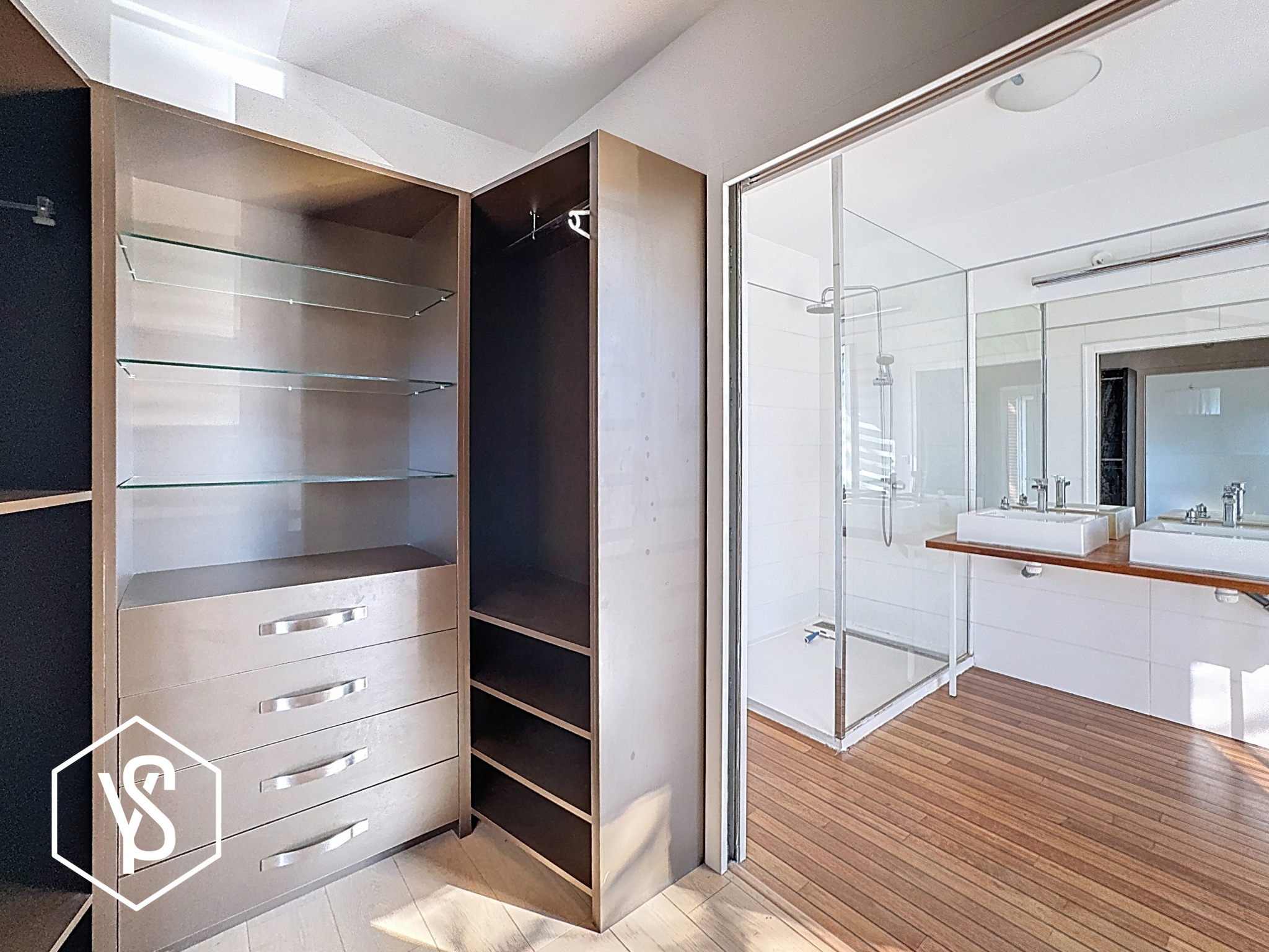 A l'étage : 3 chambres dont suite parentale de 46m² avec balcon filant sur façade , 2 chambres indépendantes, WC séparé et salle de bains/balnéo.