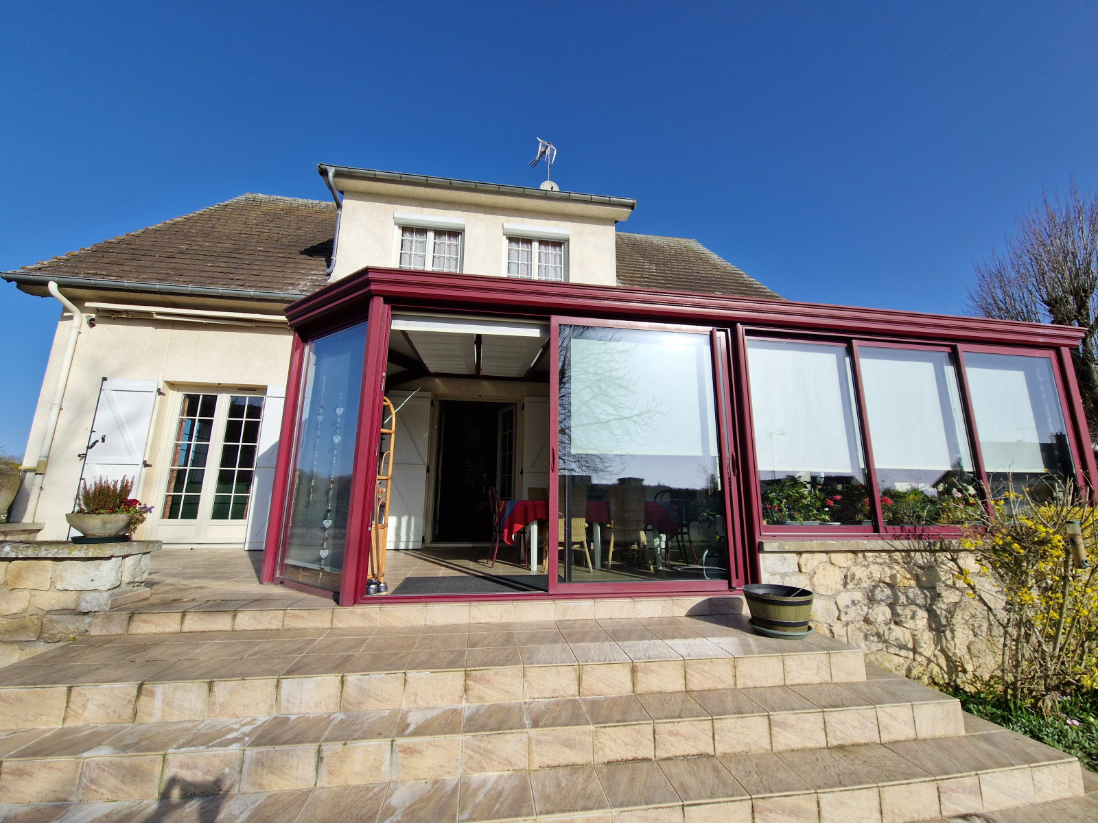 Sur un beau jardin clos et arborer de 1600 m². Les + ( huisseries doubles vitrage pvc 10 ans, portail électrique, adoucisseur, pompe à chaleur 2 ans).