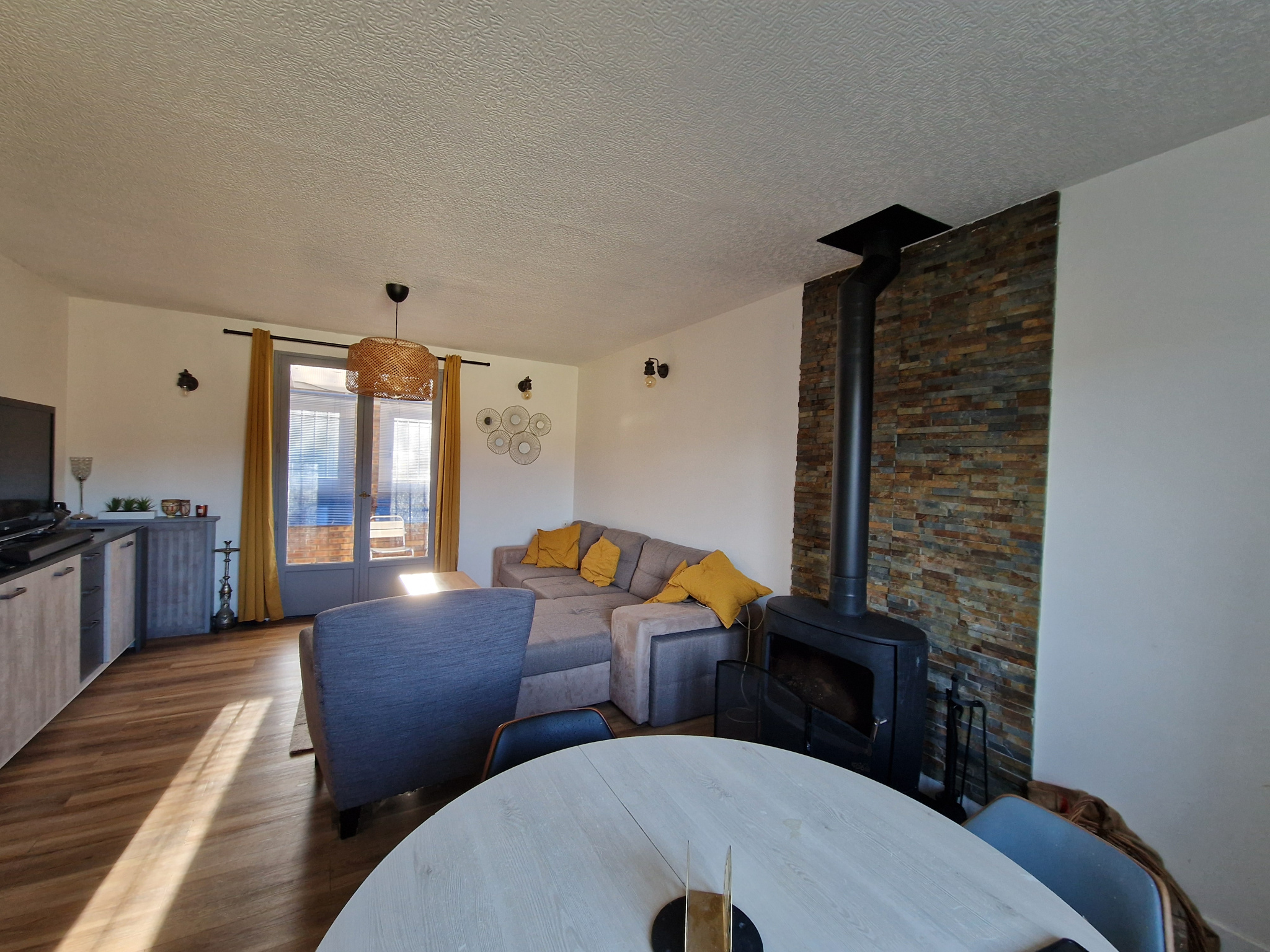 Comprenant: Une entrée avec rangement, un séjour double avec poêle à bois, une cuisine équipée, une véranda, 4 chambres, une salle d'eau avec wc.